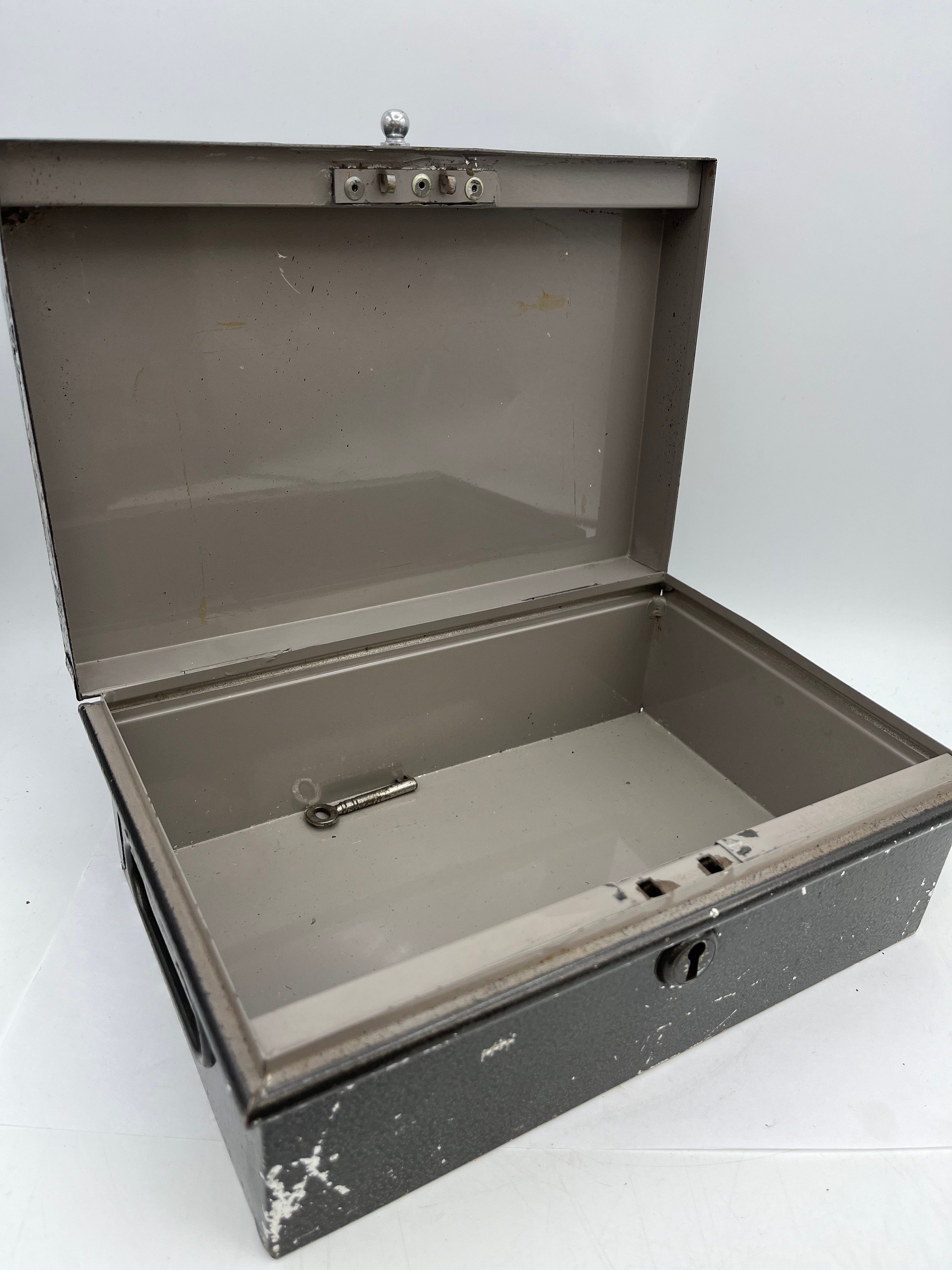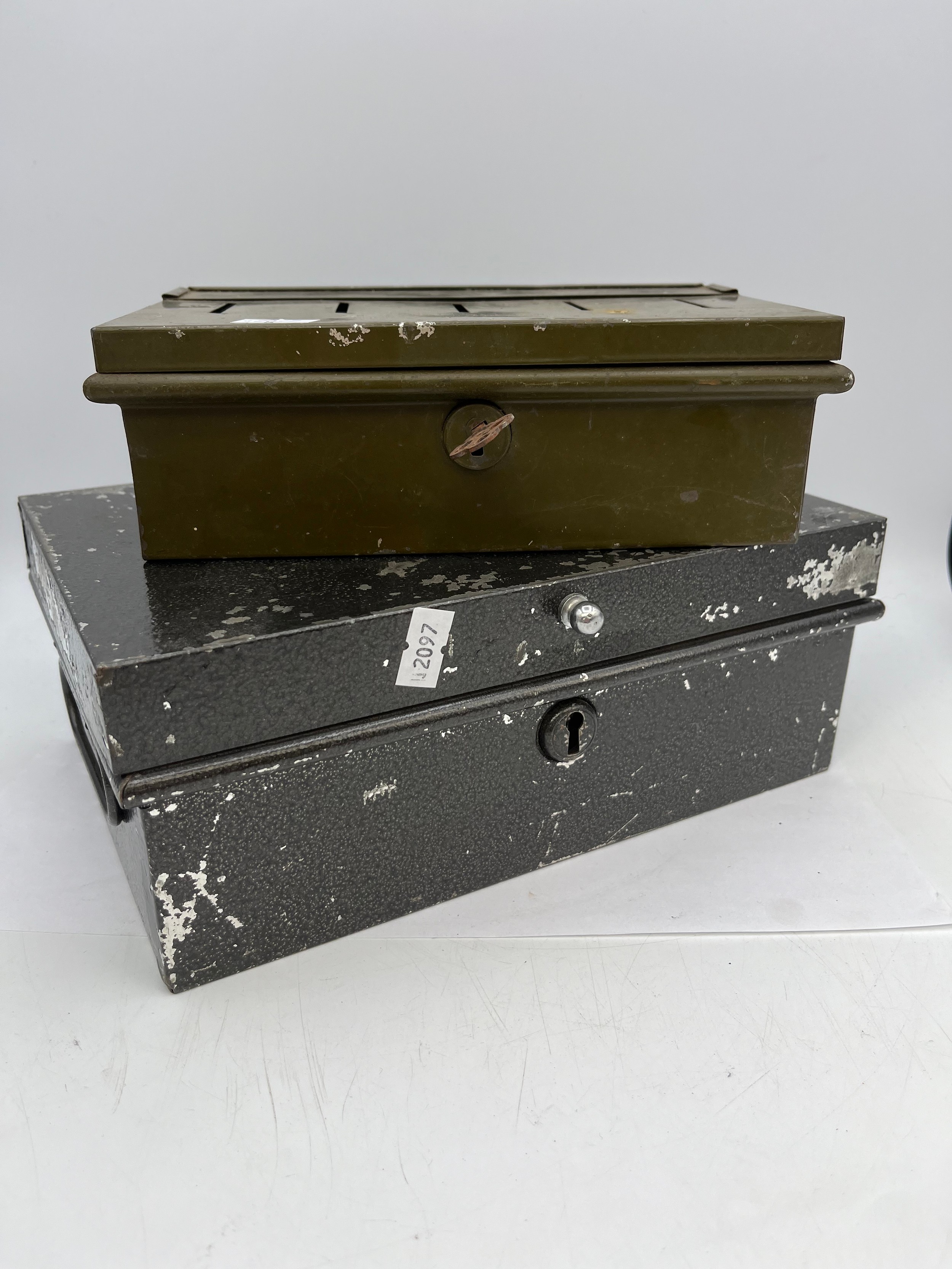 Two Vintage Money Boxes Largest 10" x 6.5" Both With Key.