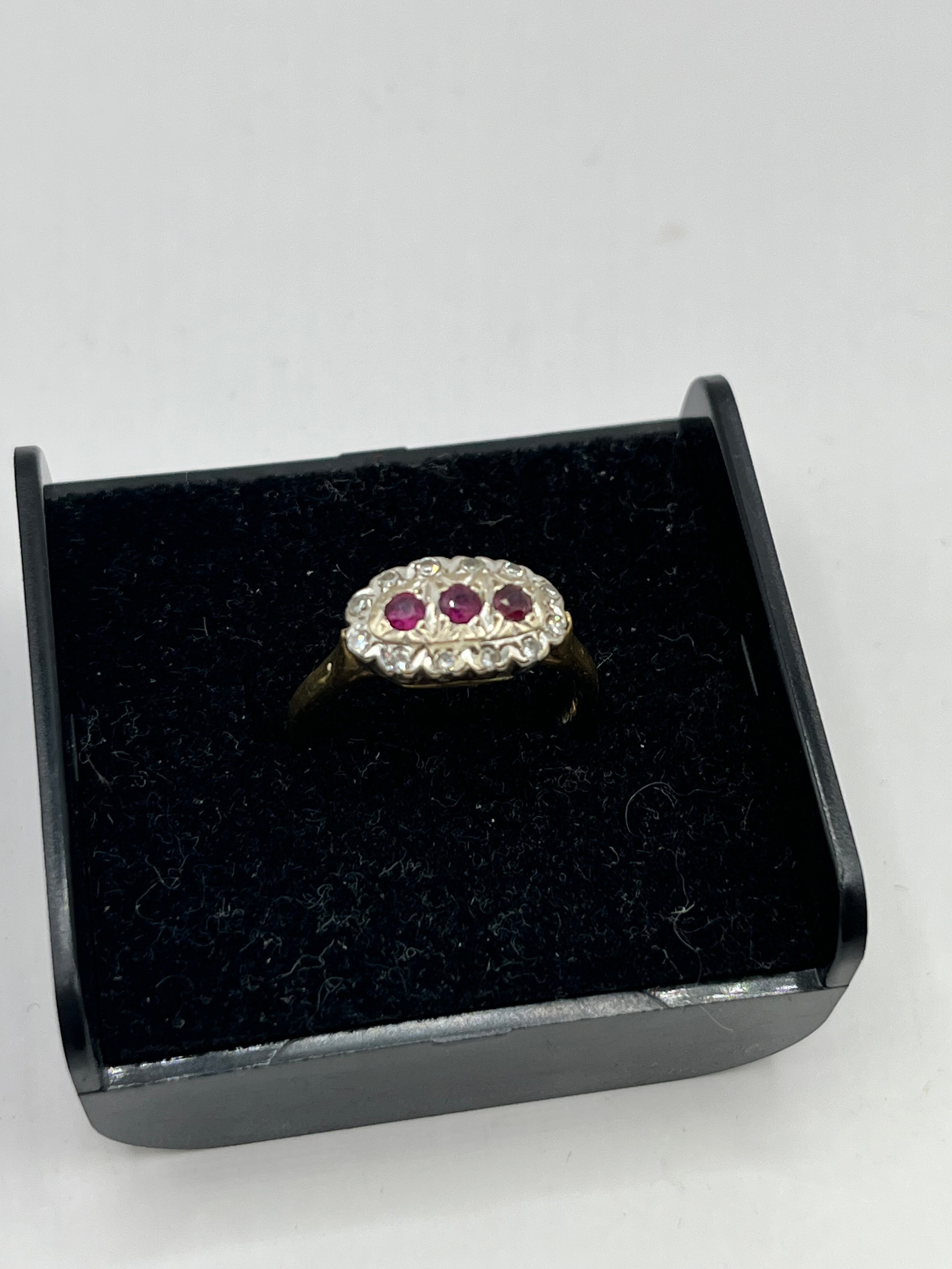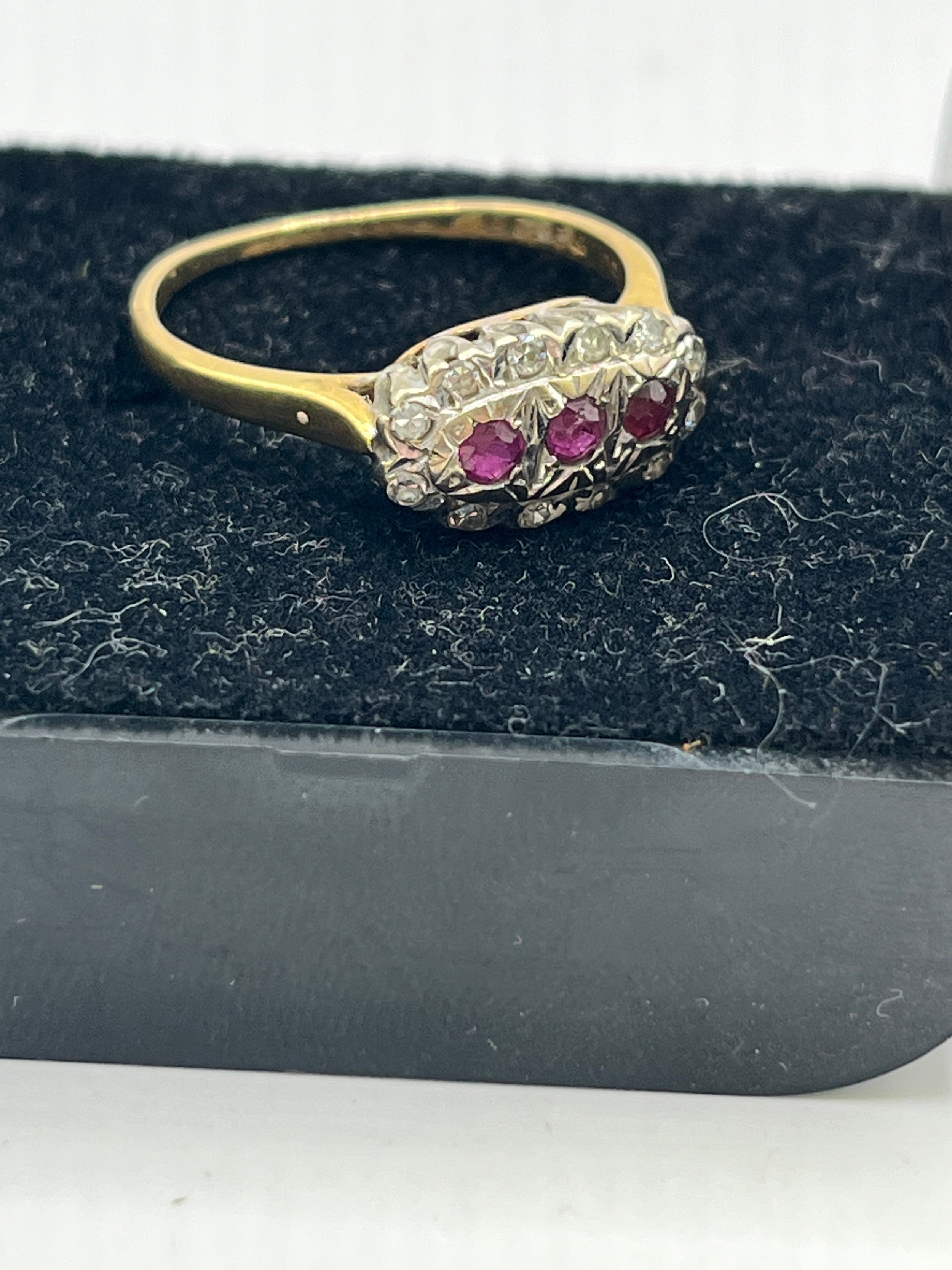 18ct Gold Ring With Red Stones Size M ,3.2g.