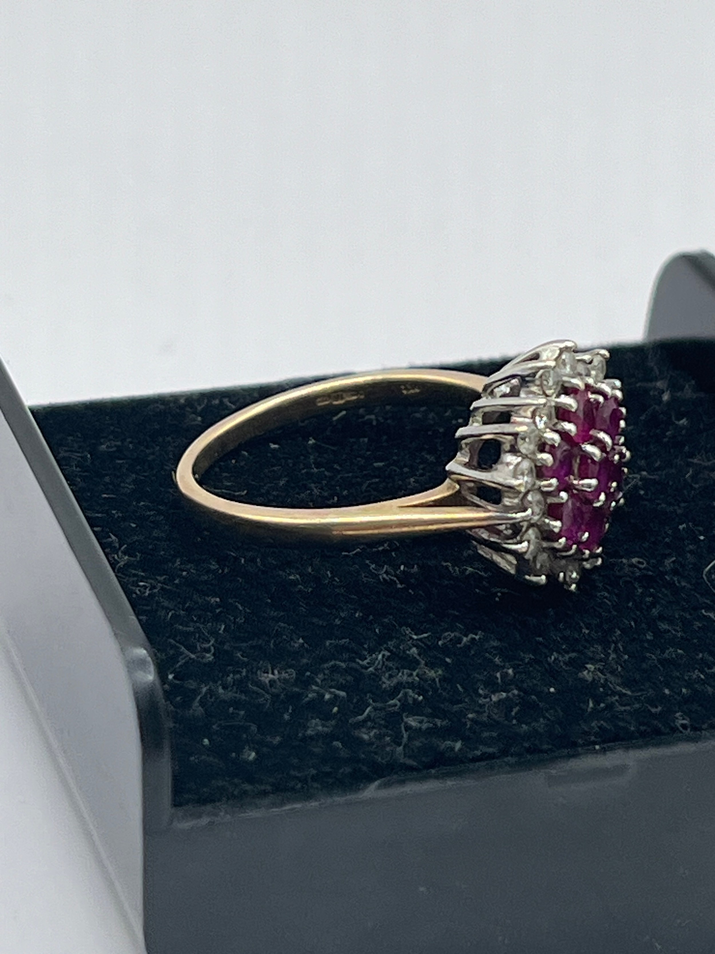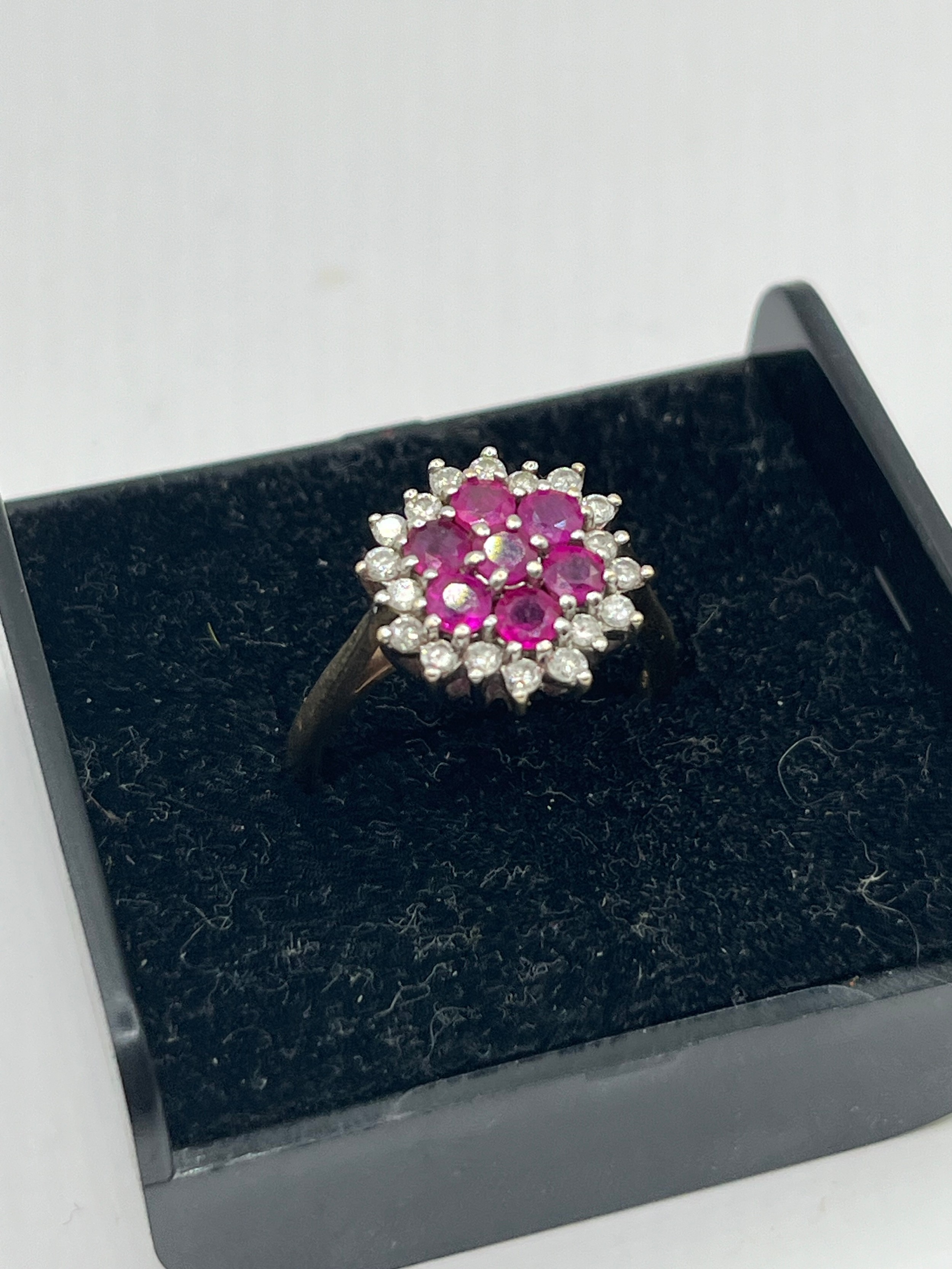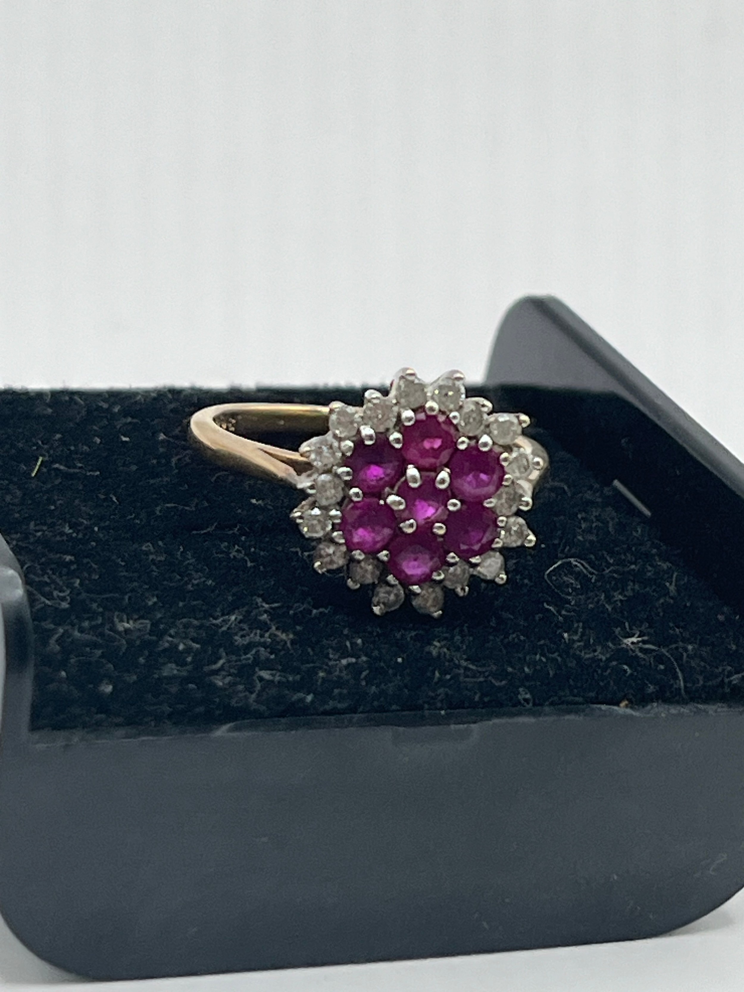 9ct Gold Floral Cluster Ring With Red Stones, Size O , 3.6g