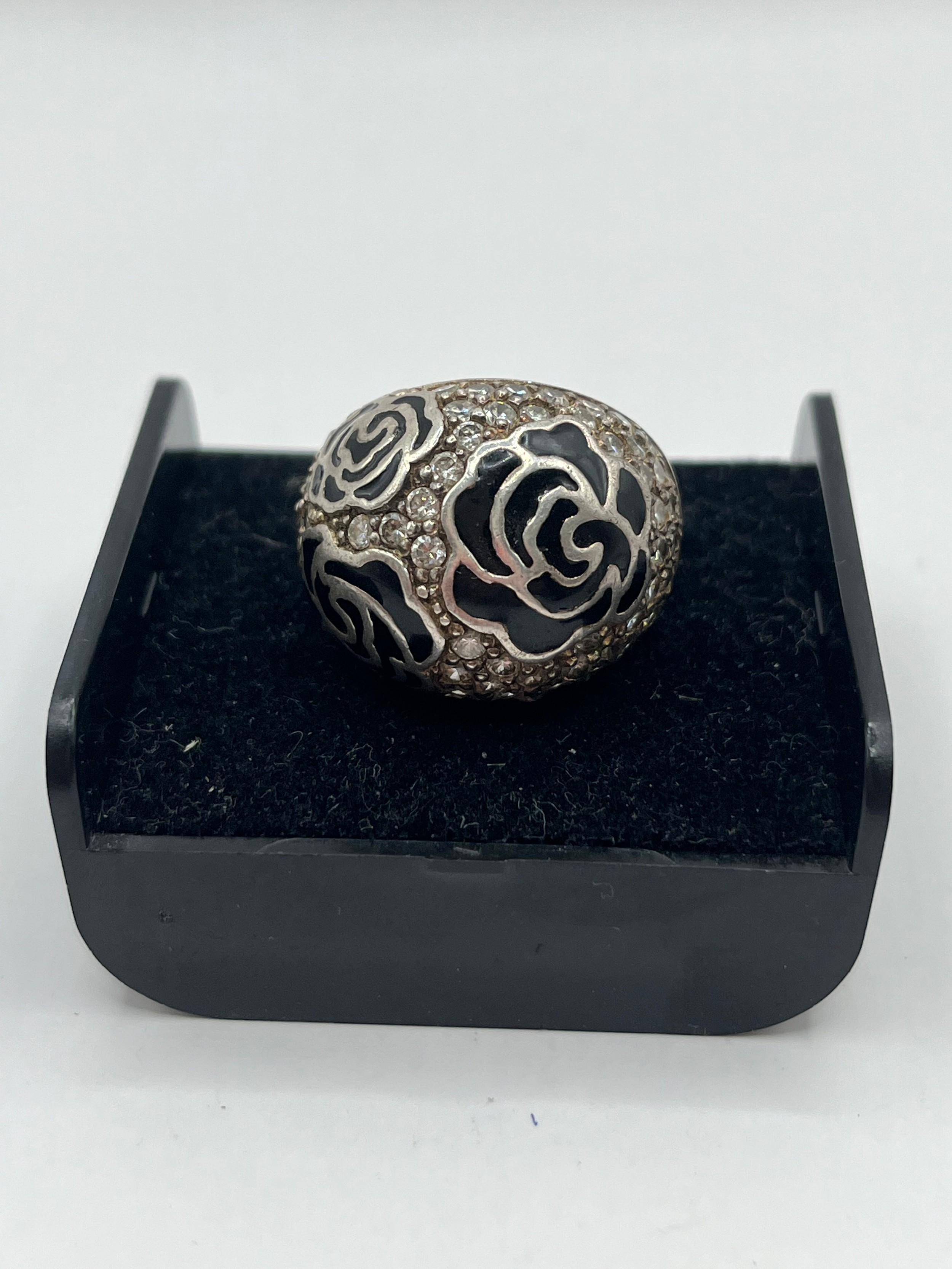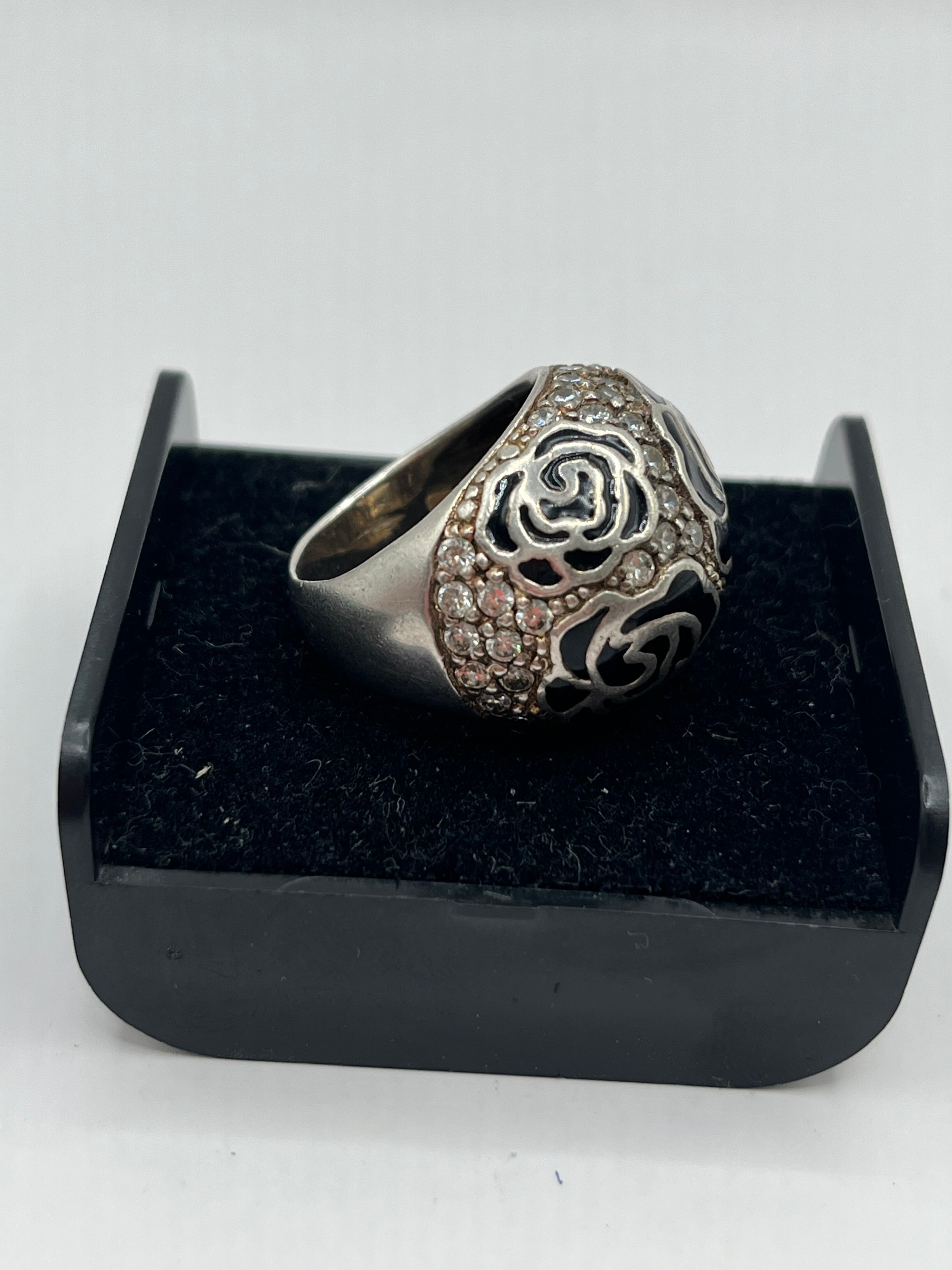 Large Silver Ring With Floral Design Size M.