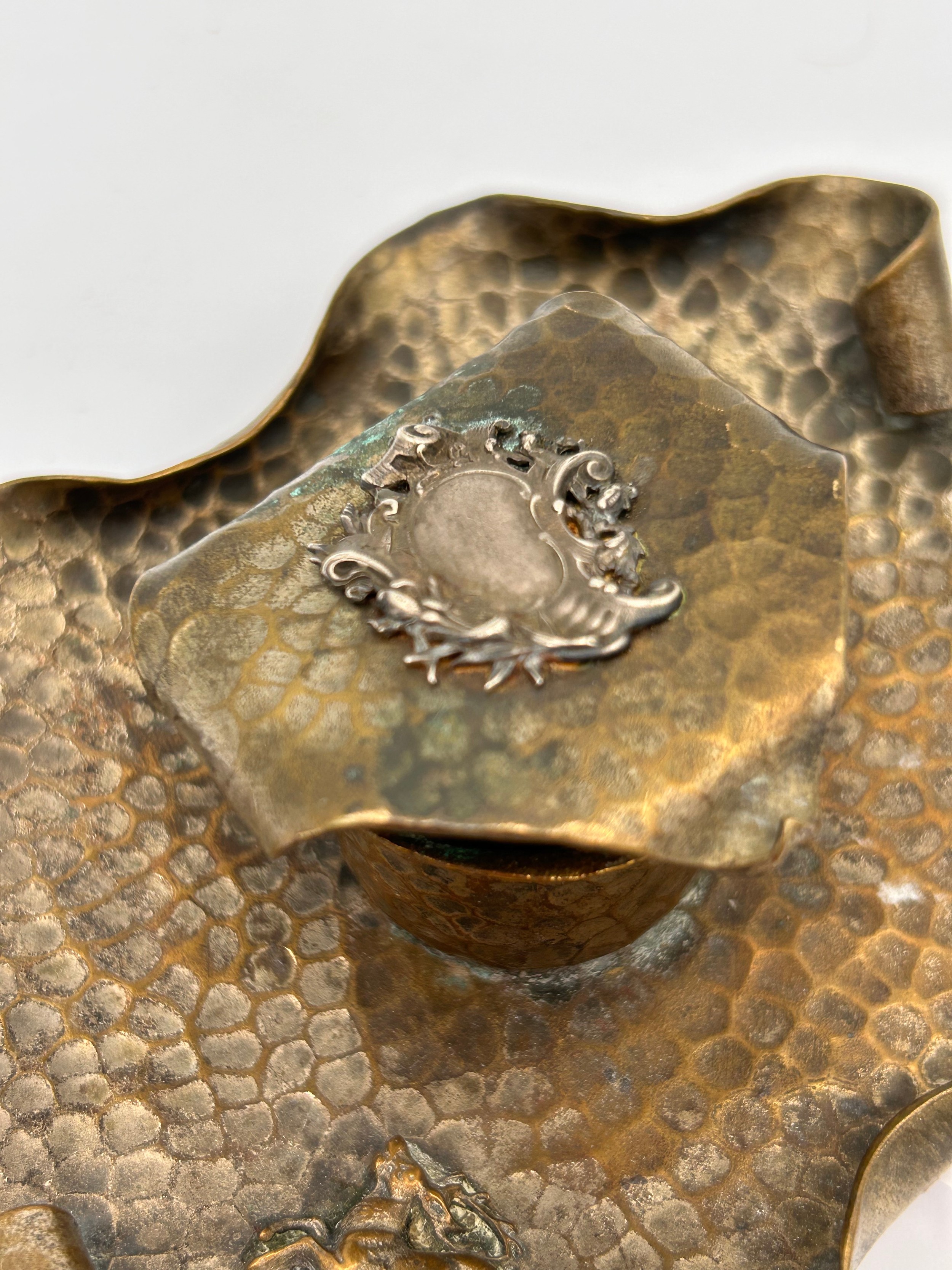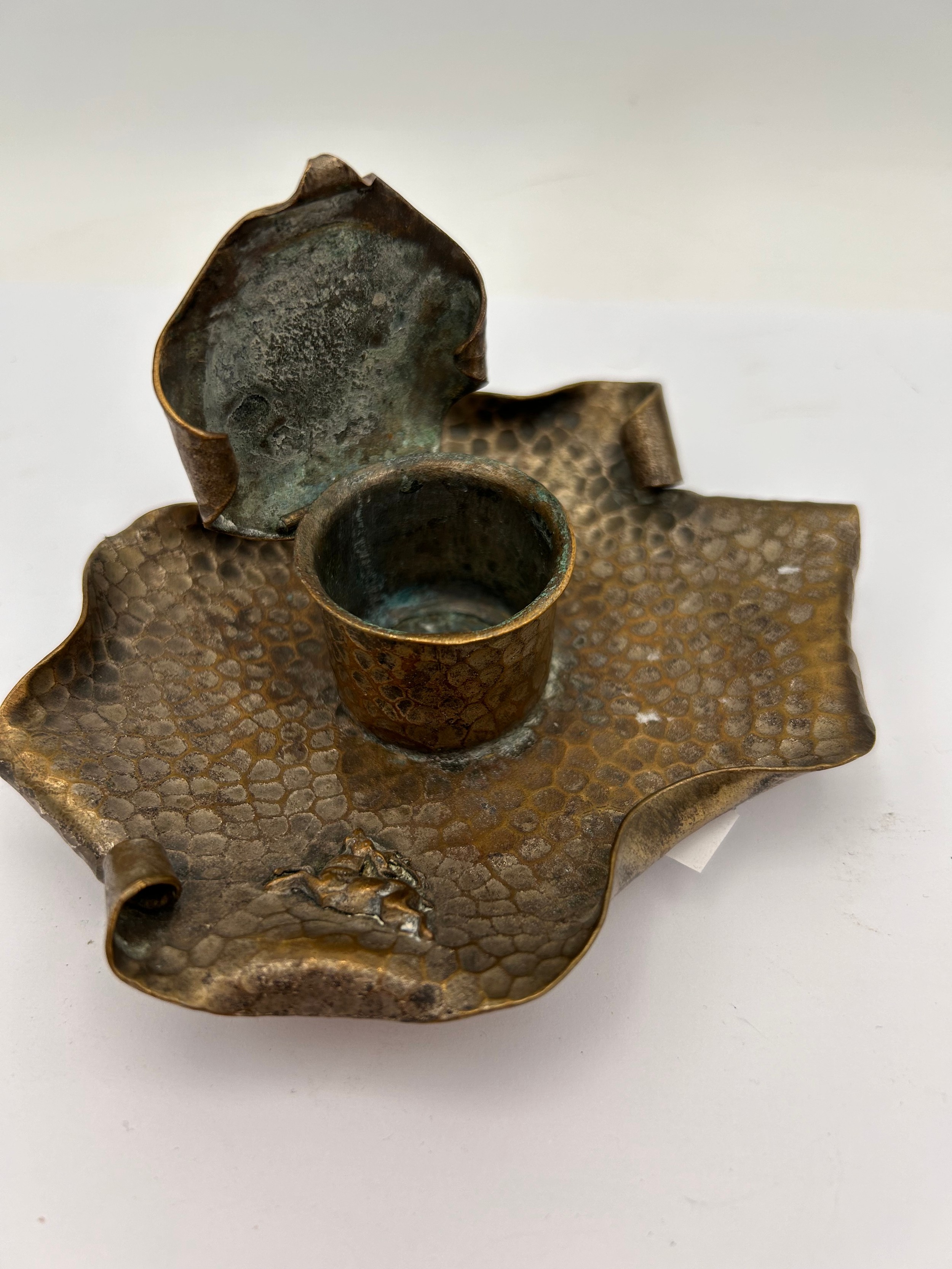 Interesting Brass Hand Hammered Antique Ashtray/Candle Holder?