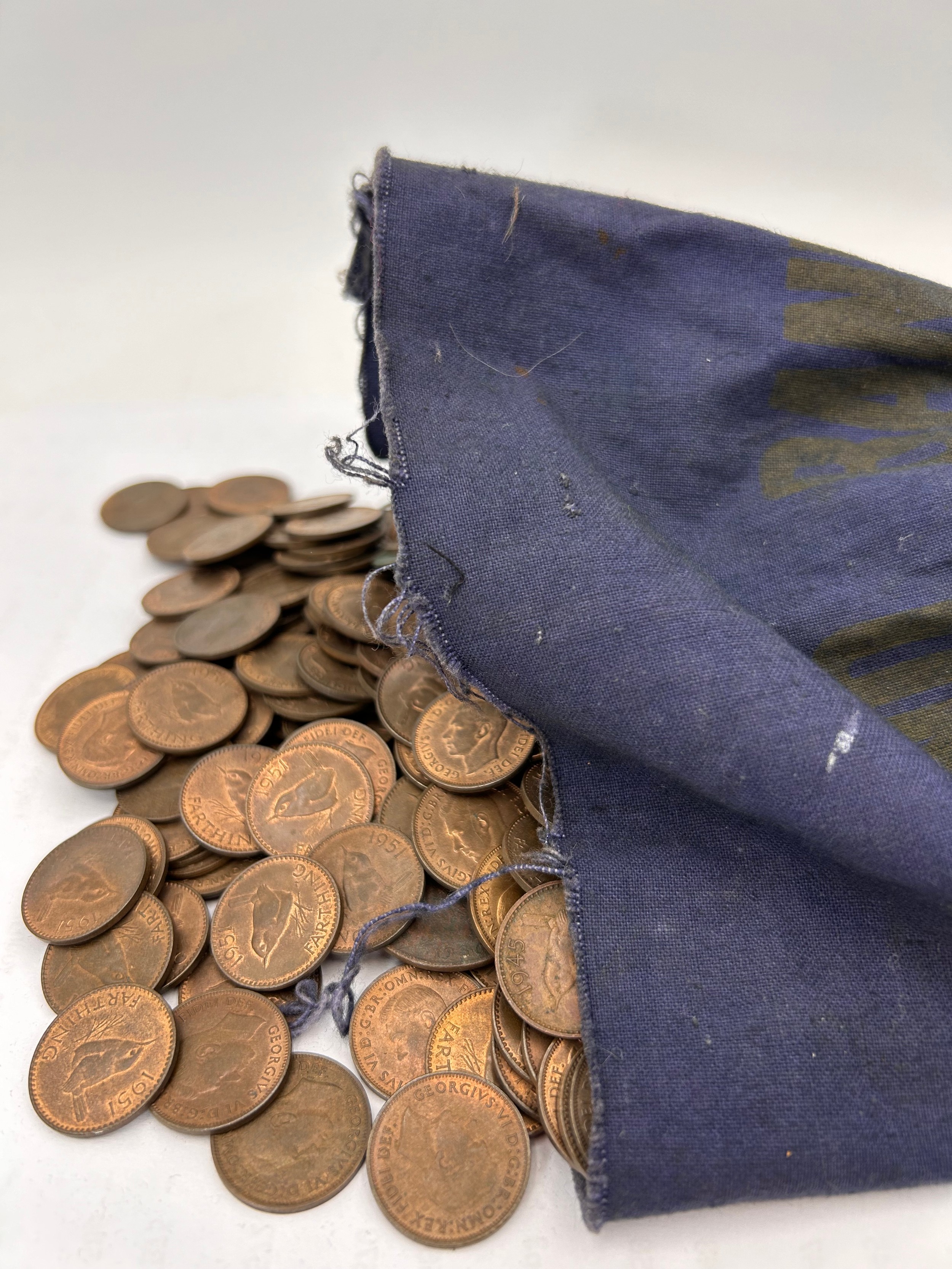 Midland Bank Moneybag, Full Of Mostly Farthings. Approx 1kg