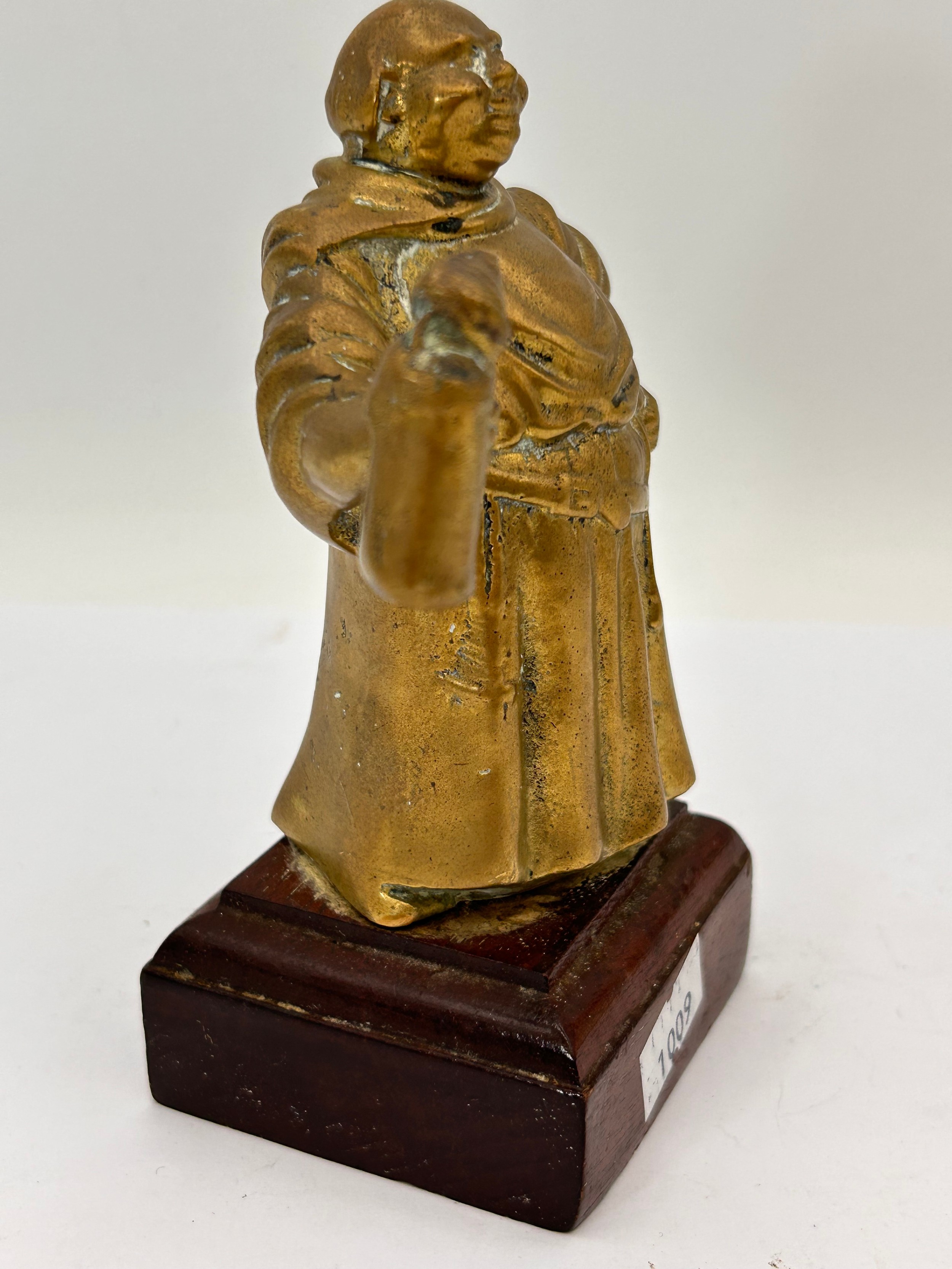 Very Heavy Brass Mounted Monk Figure , Standing 5".