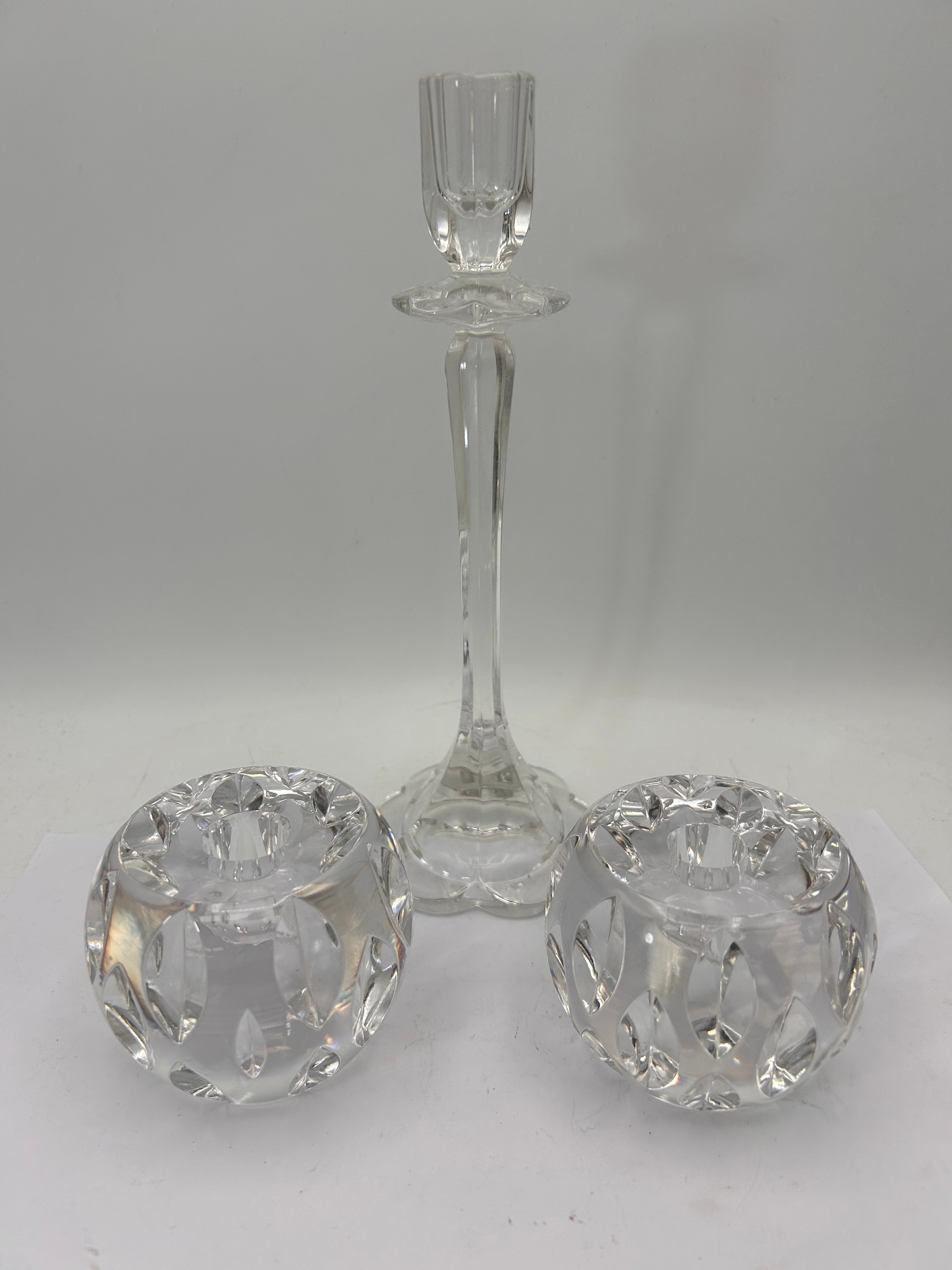 Pair Of Royal Doulton Crystal Stubby Candle Holders Along With Nachtman Candle Holder.