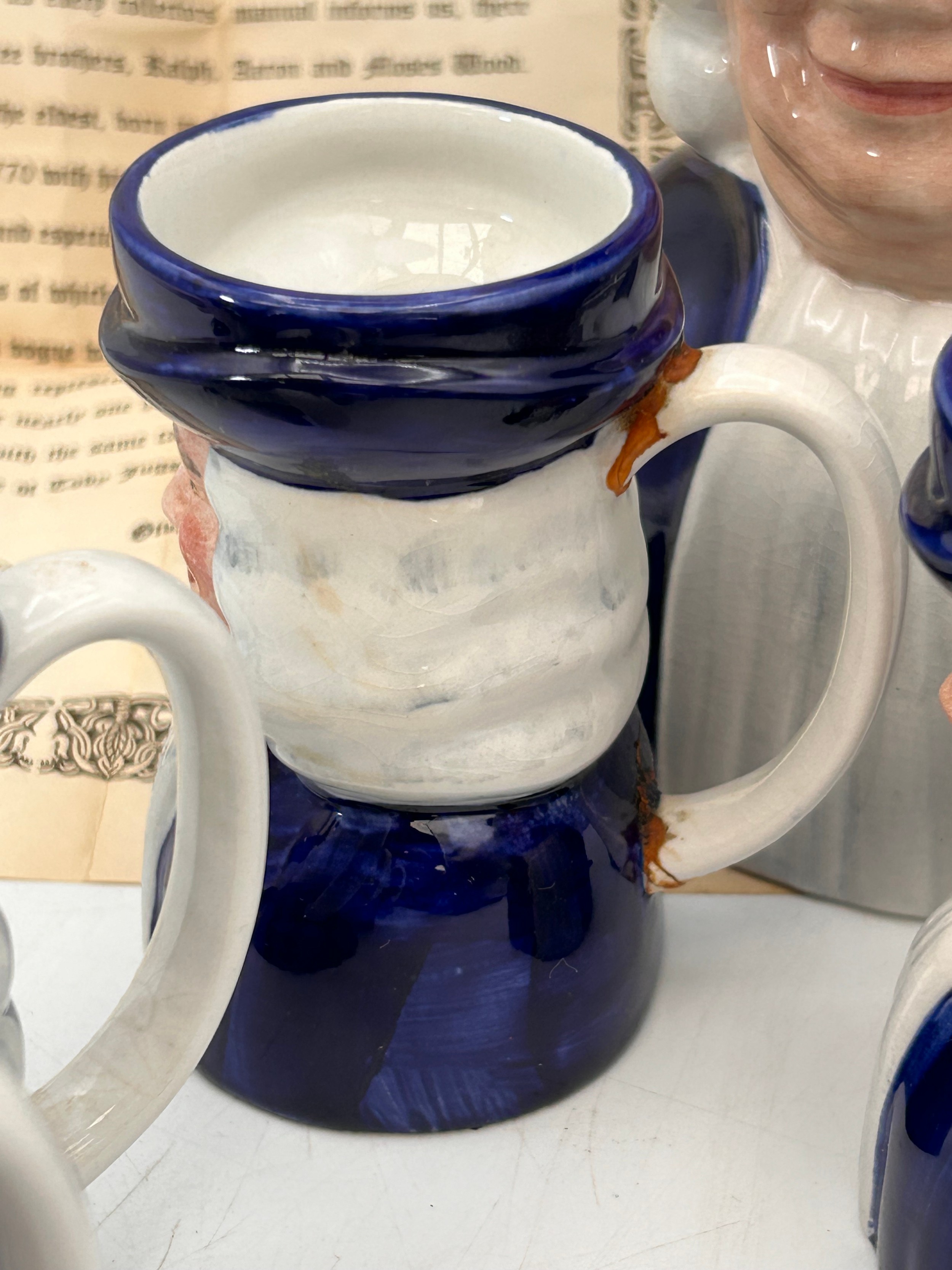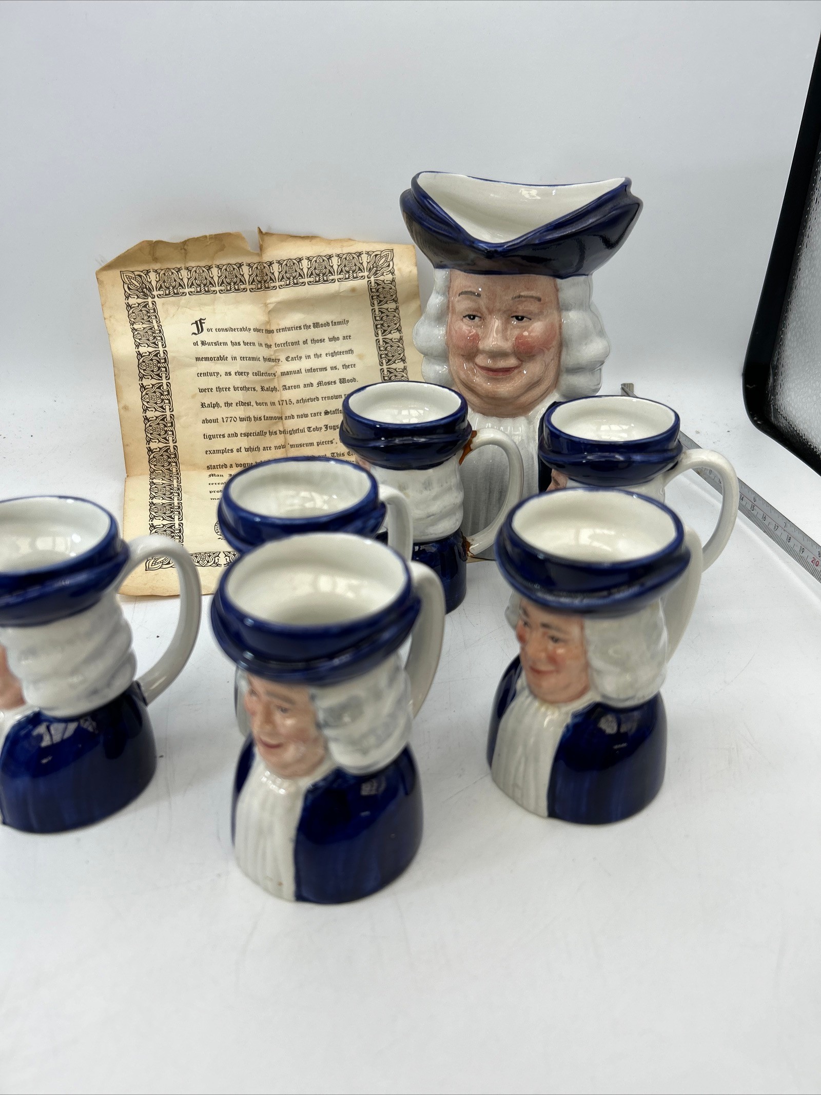 Set Of Wood & Sons Toby Jugs , One Large 6.5" And Six Small At 3.5" (Repair To One Small Handle)
