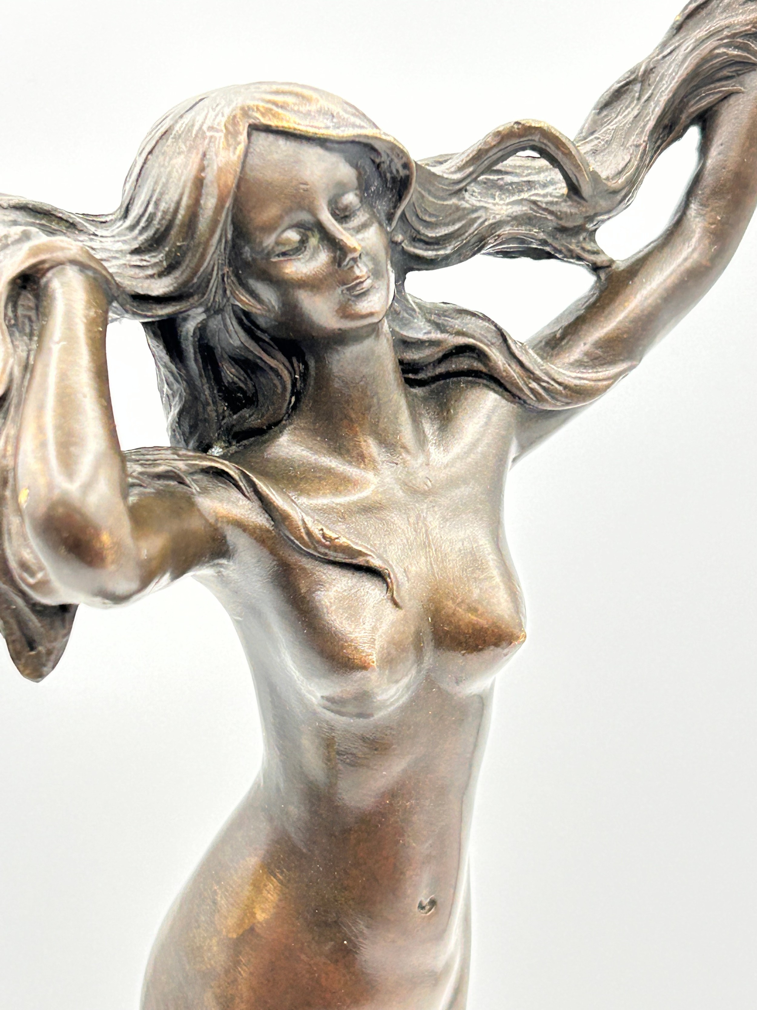 Lovely Detail Naked Bronze Lady , 15" At Highest, Signed Jean Patou