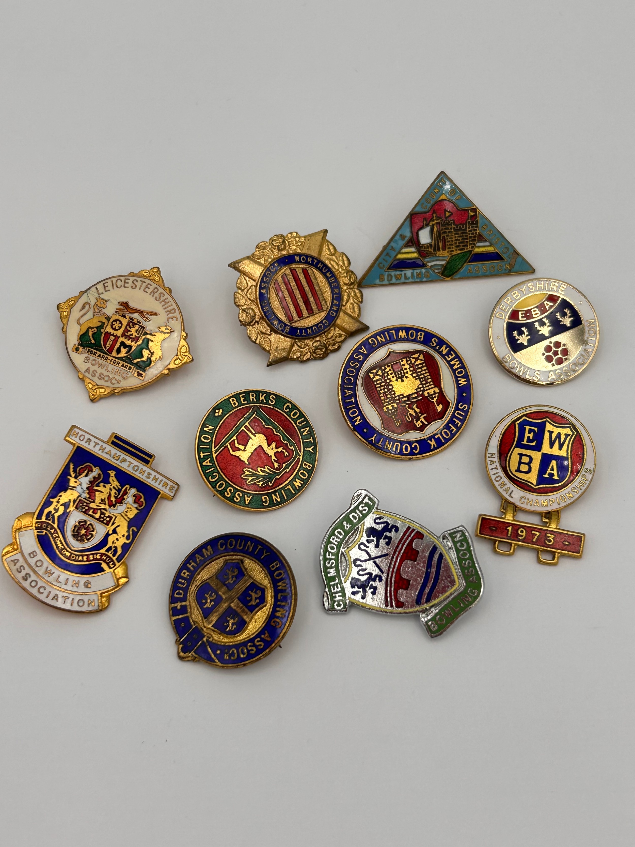 Selection Of Badges Relating To Bowling , Including Enamel.