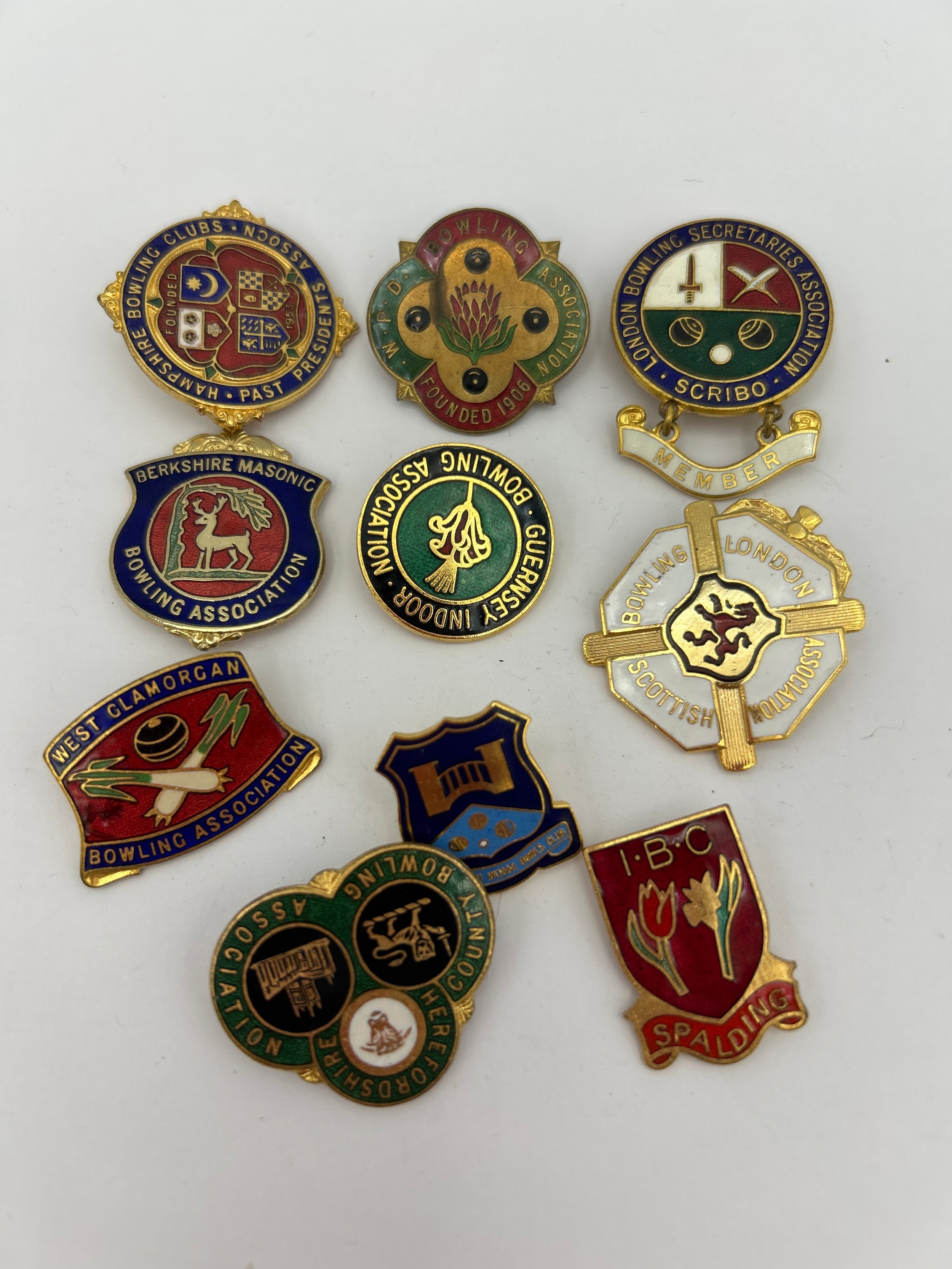 Selection Of Badges Relating To Bowling , Including Enamel.