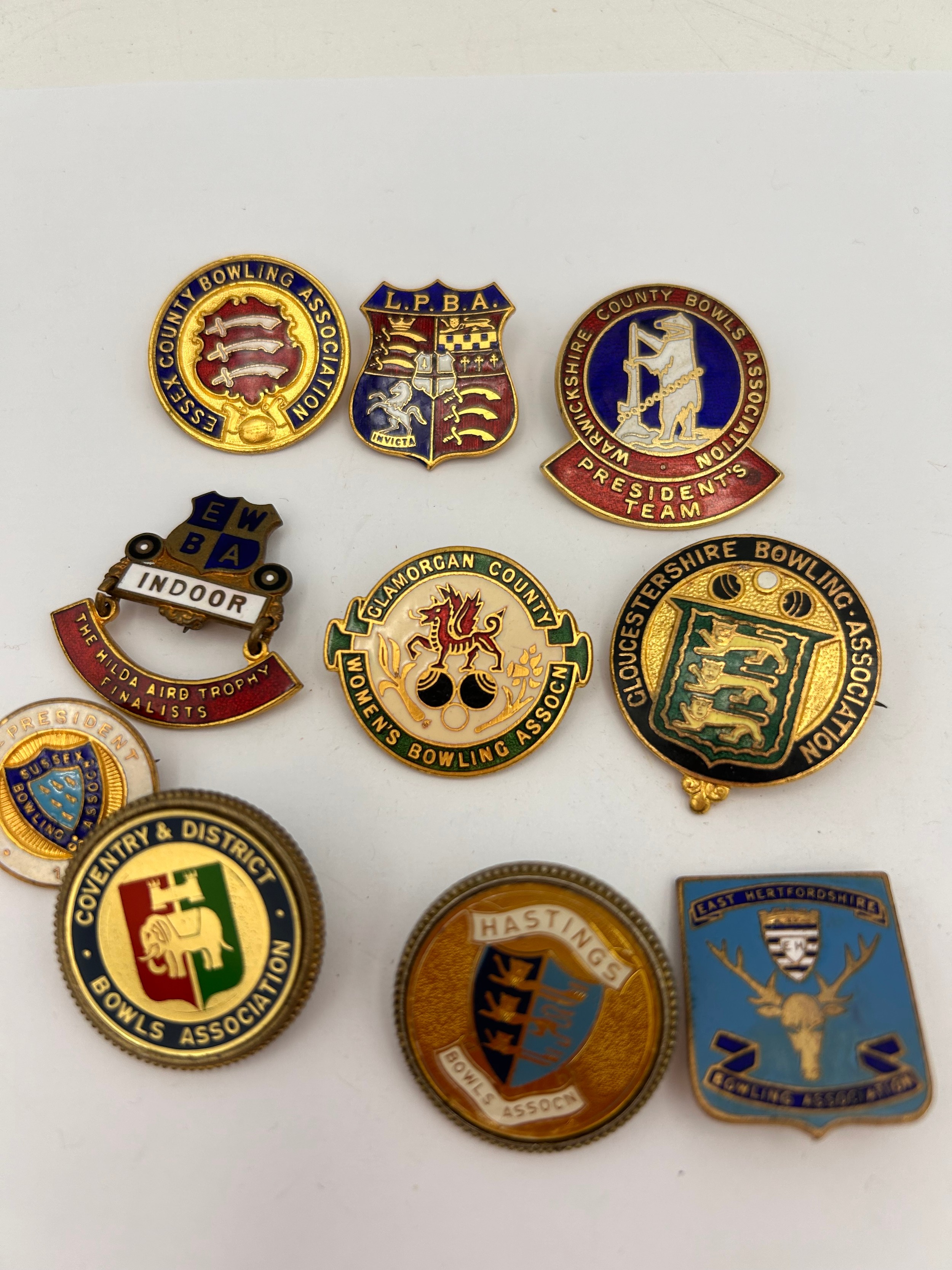 Selection Of Badges Relating To Bowling , Including Enamel.