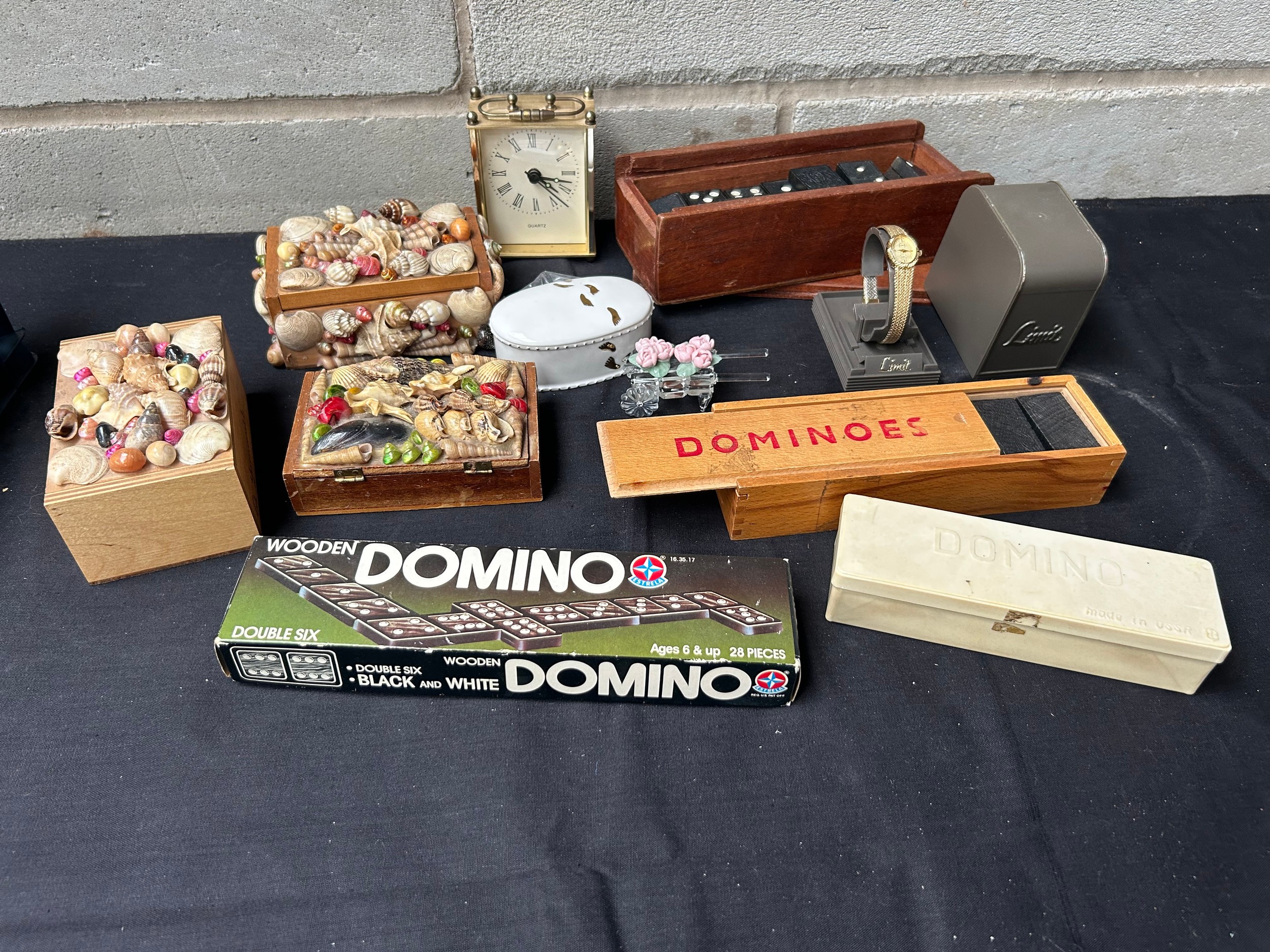 Mixed Lot Including Clock, Domino’s ,Trinket Boxes Etc.