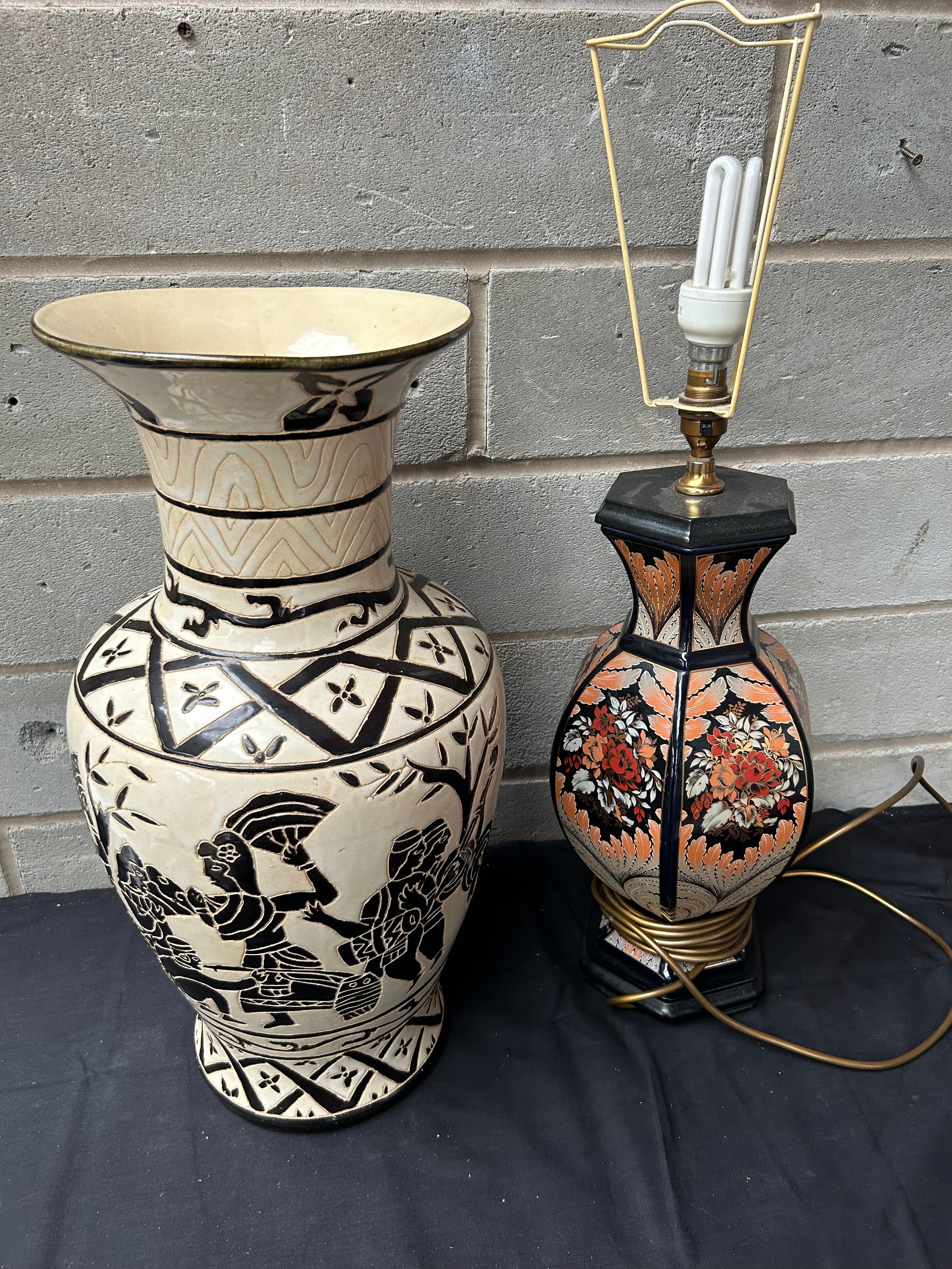 Large Floral Ceramic Lamp Base Standing 26" Plus Large Vase.