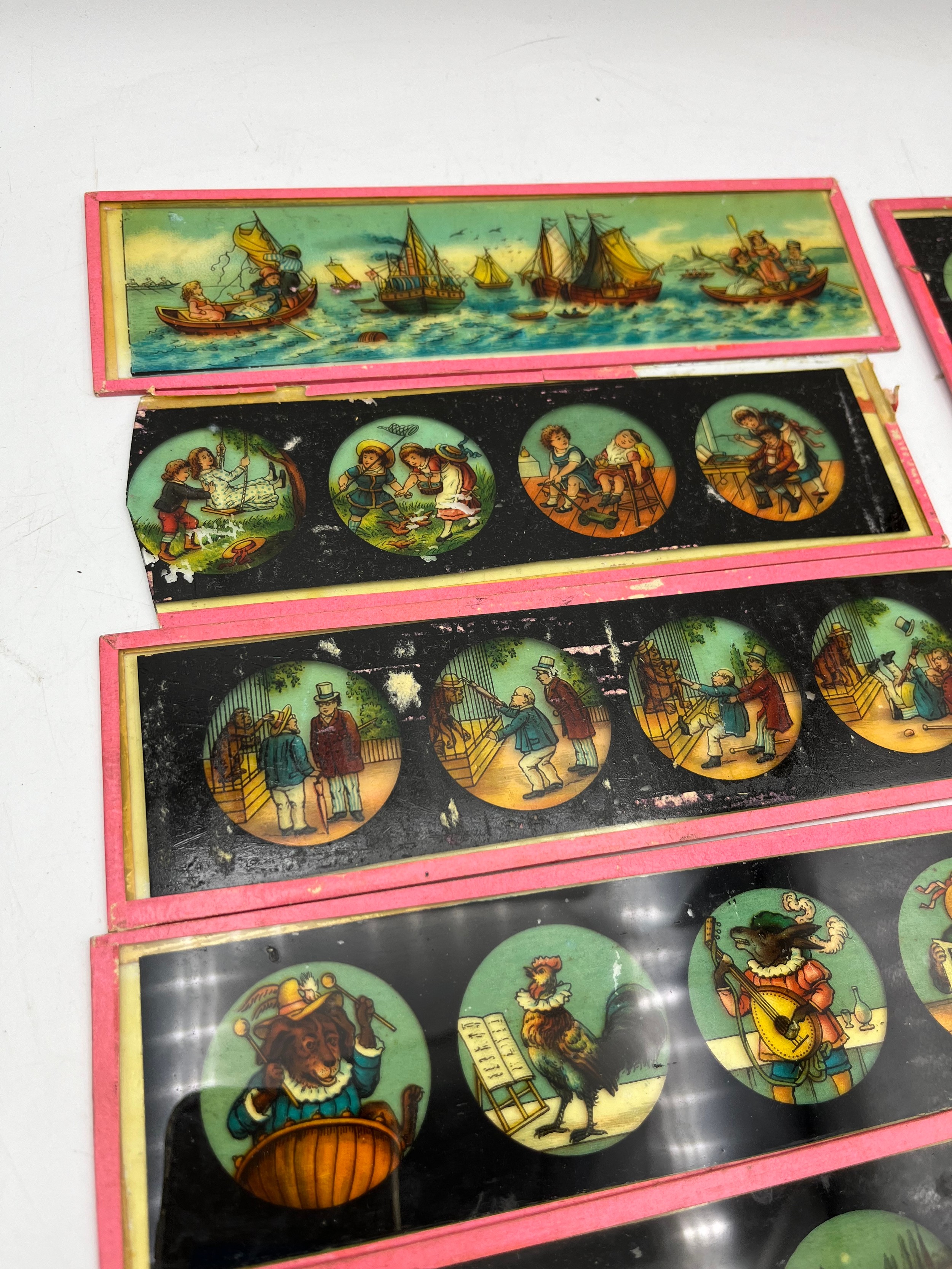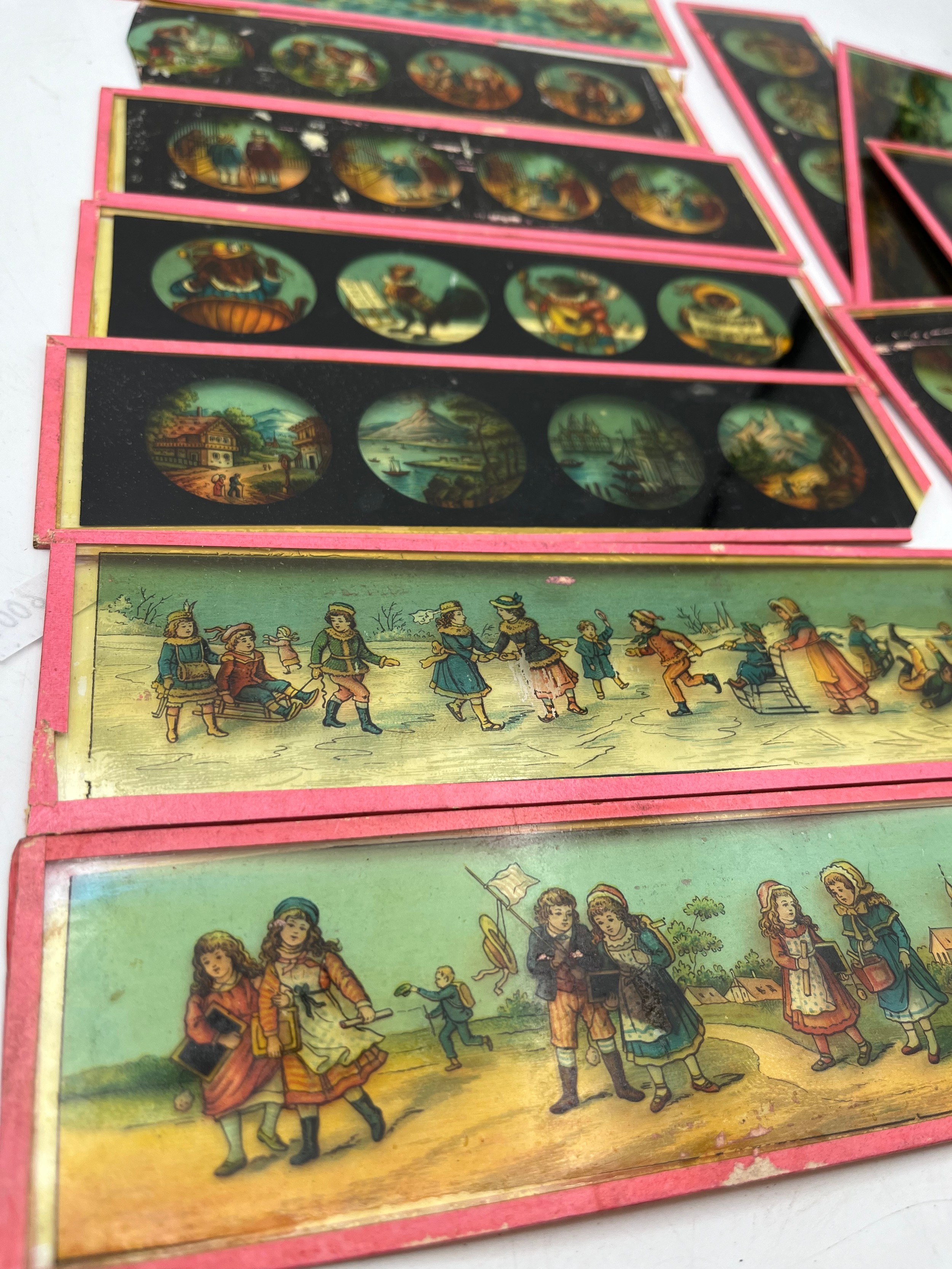 Vintage Glass Slides Including Nursery Rhymes.