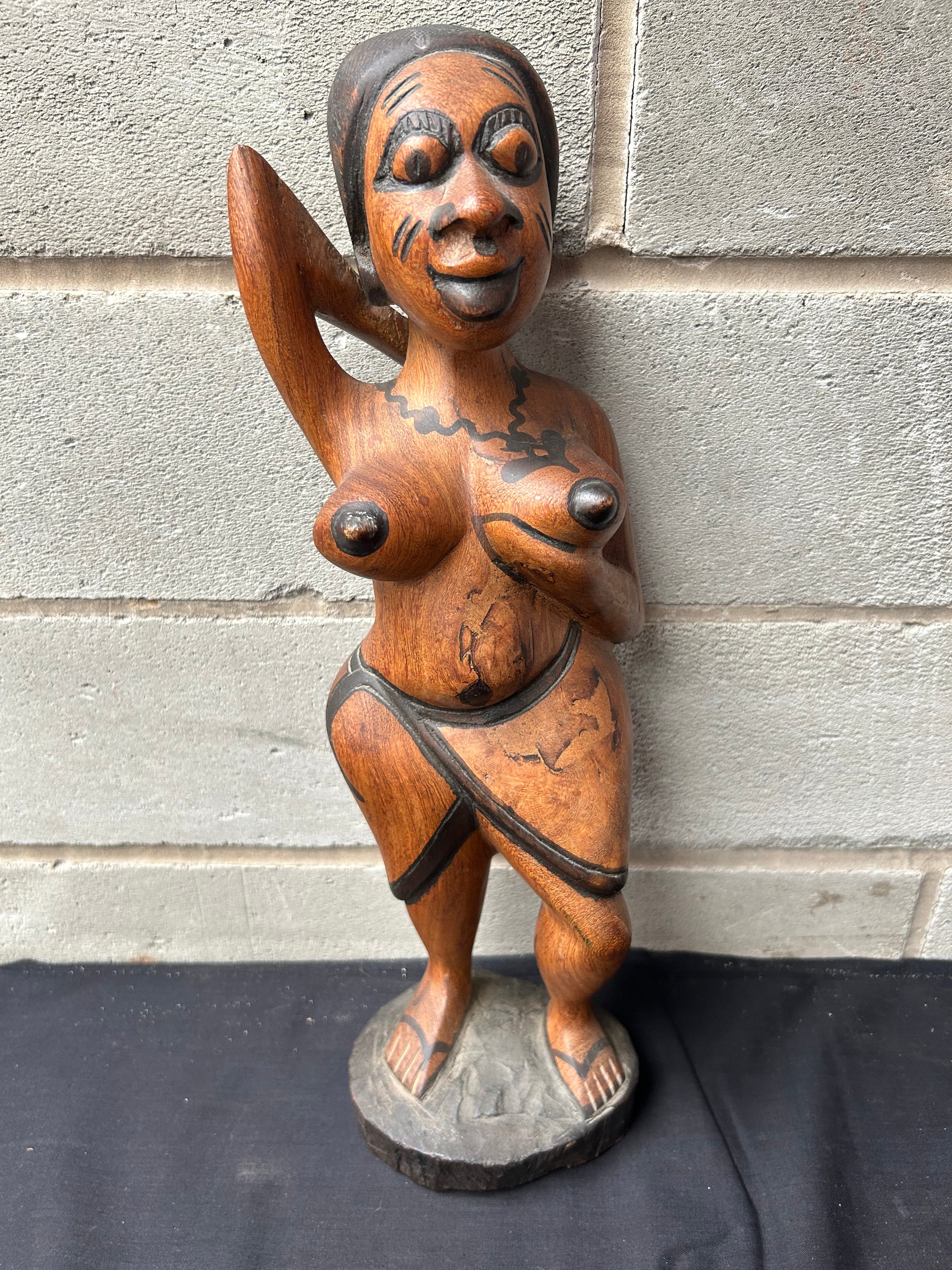 Carved Wooden Lady Standing 17".
