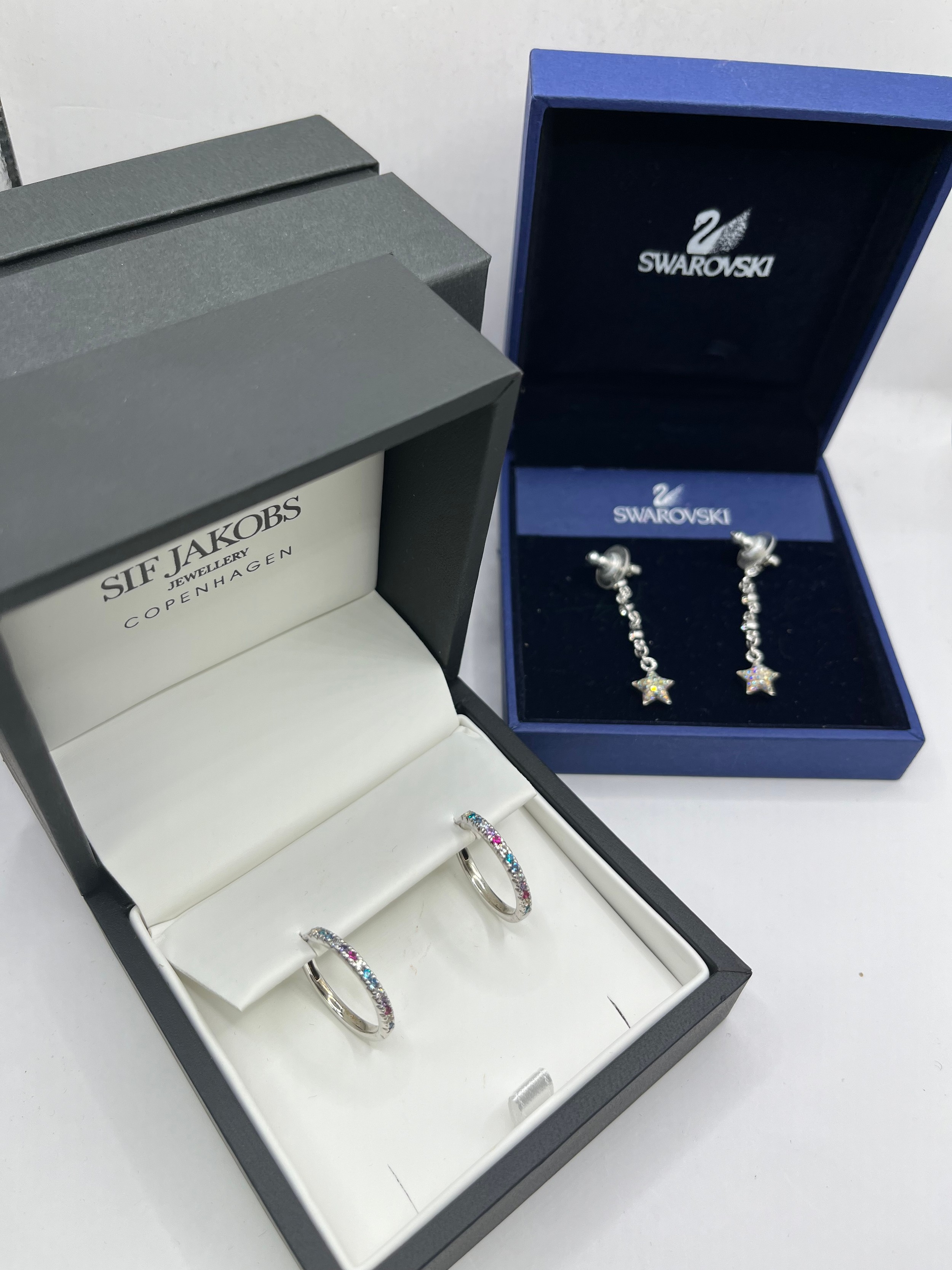 Boxed Swarovski Earing’s And Boxed Sif Jakobs Silver Earing’s.