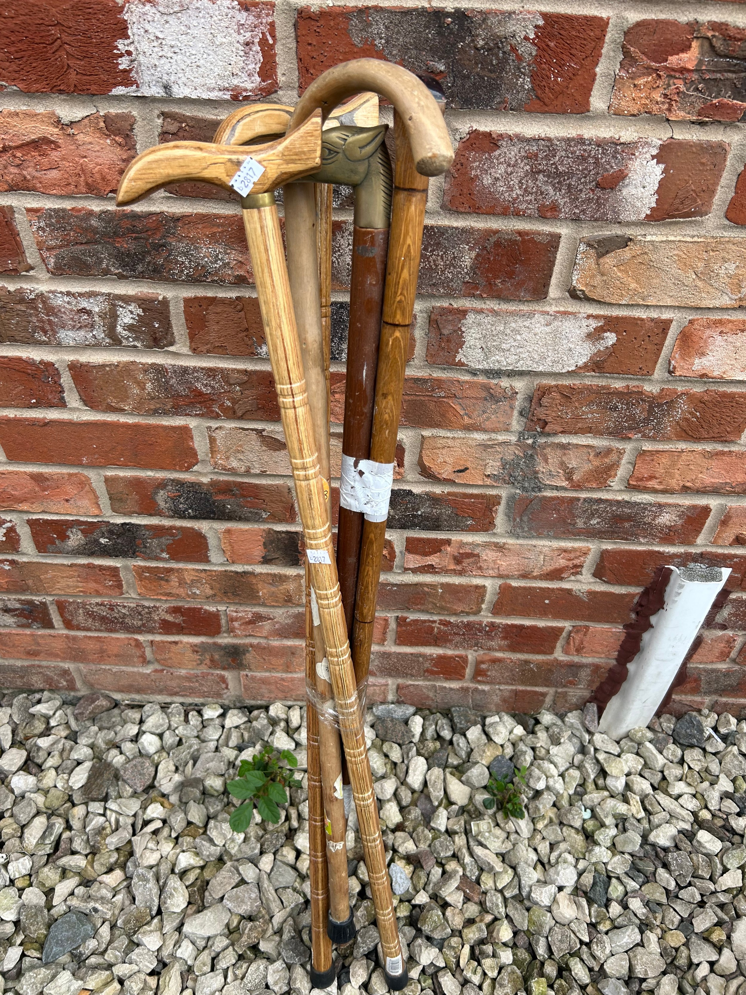 Mixed Lot Of Walking Sticks Including Brass Topped.