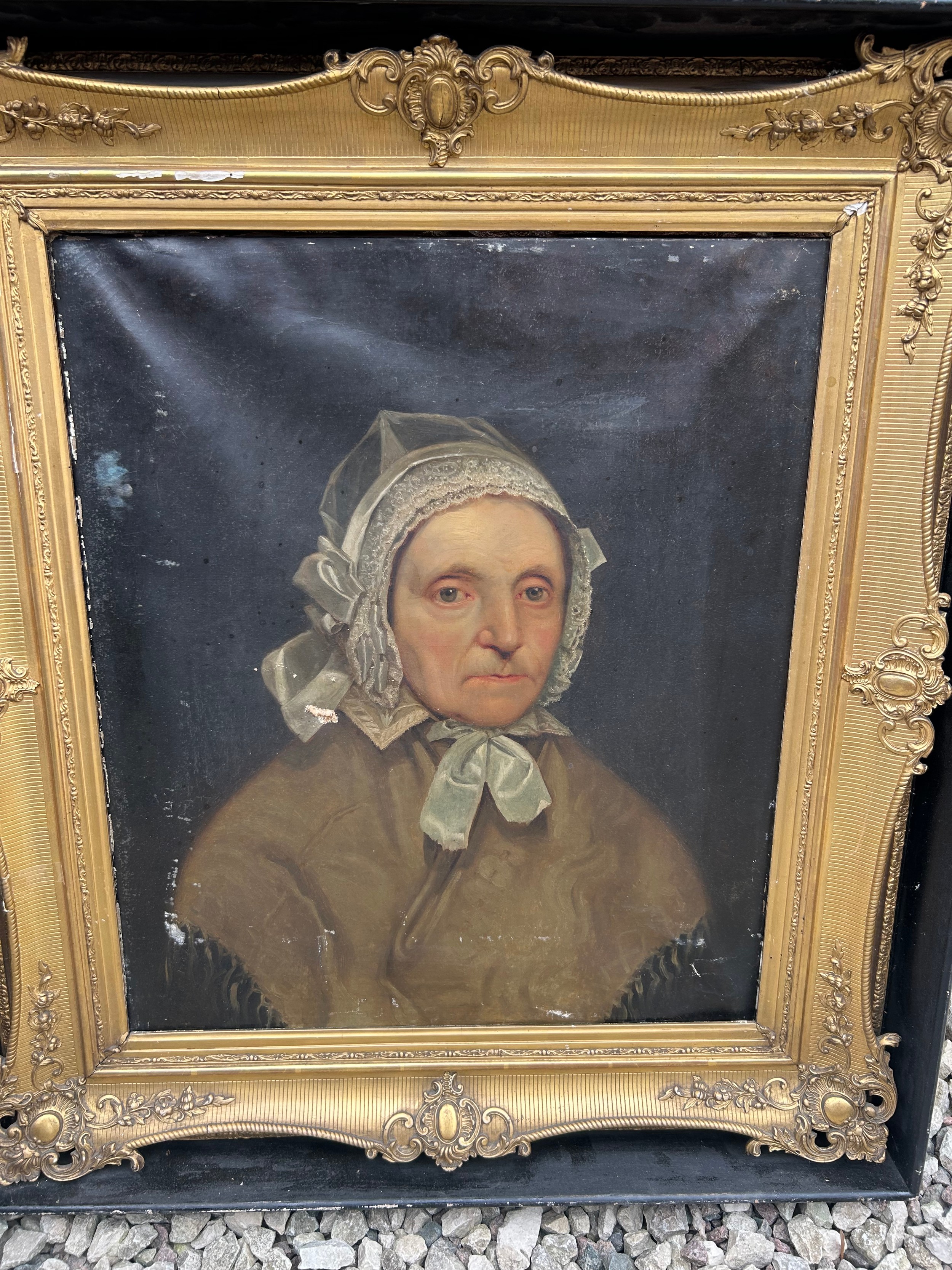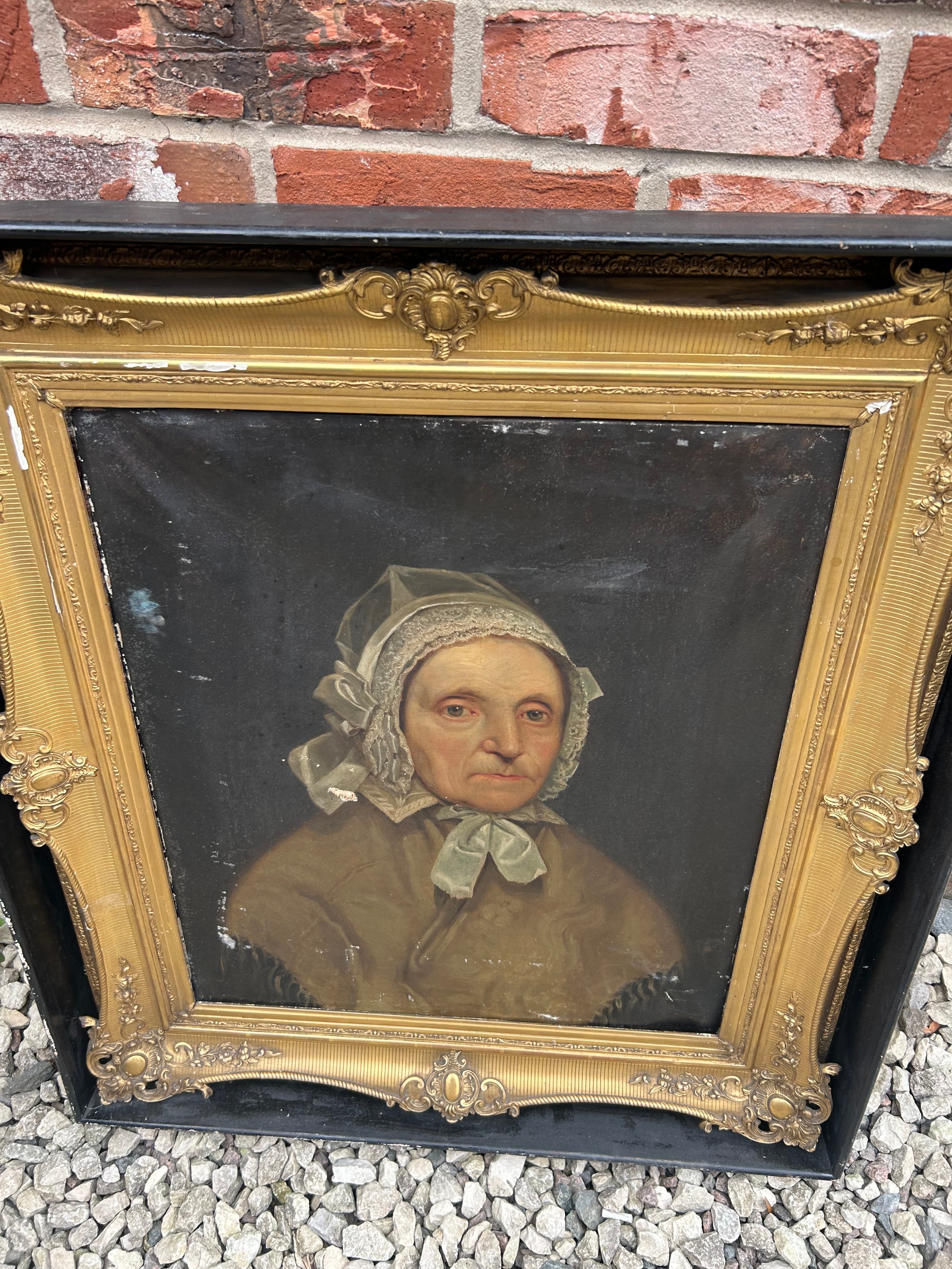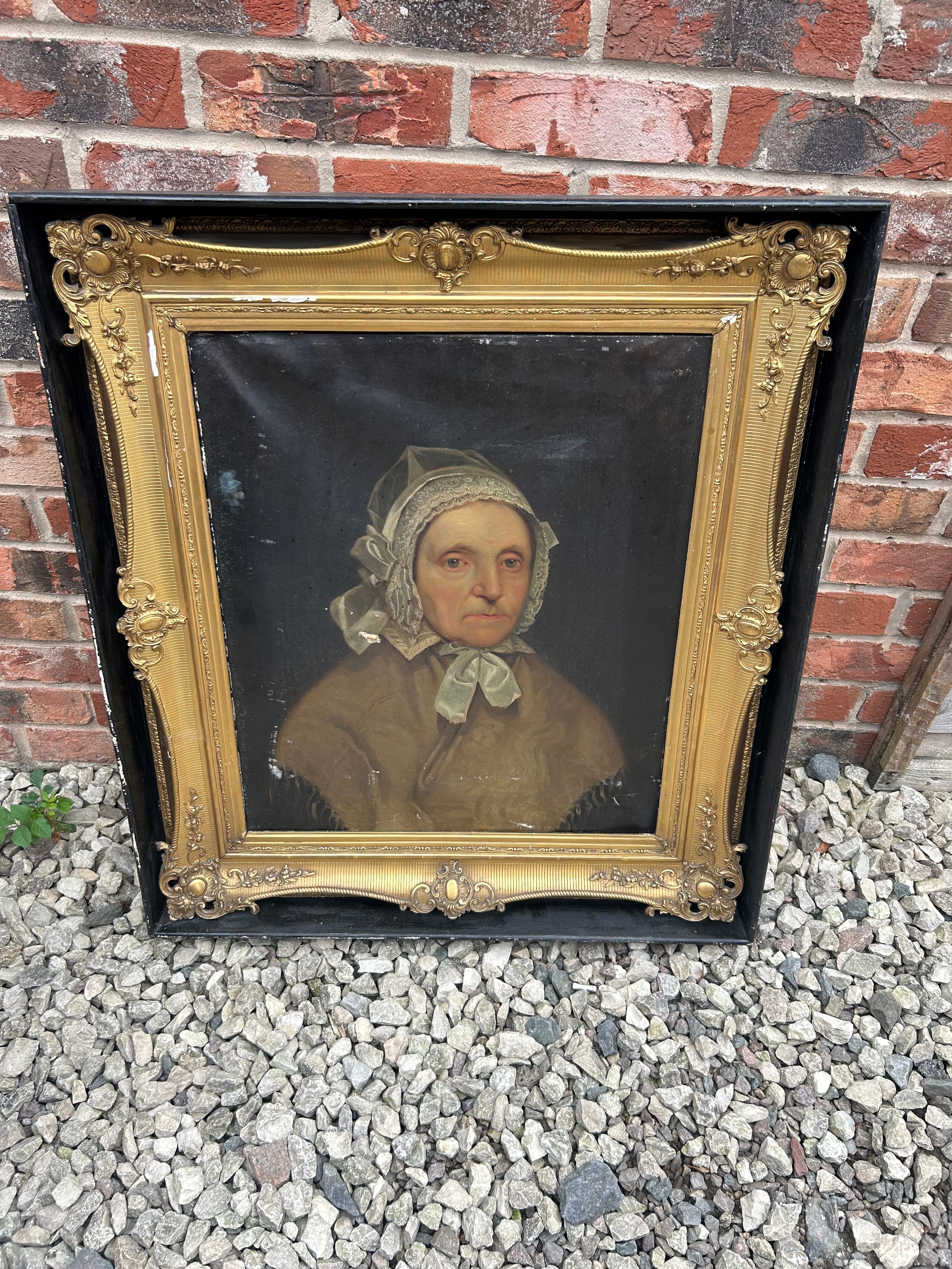 Gilt Framed Antique Oil On Canvas Of Lady 32" x 28". SEE PICTURES