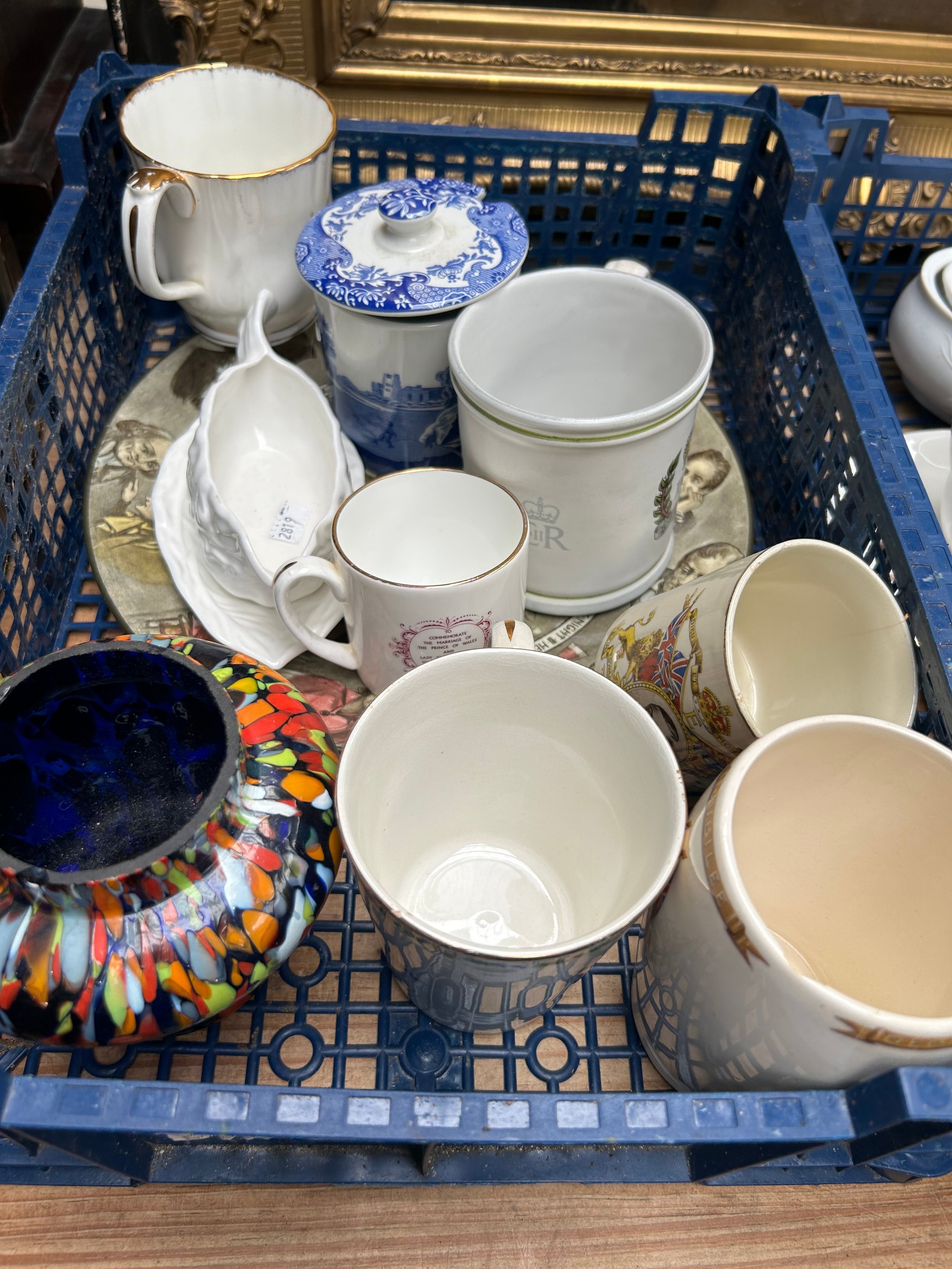 Variety Of Ceramics Including Spode Plus Coloured Glass Vase.