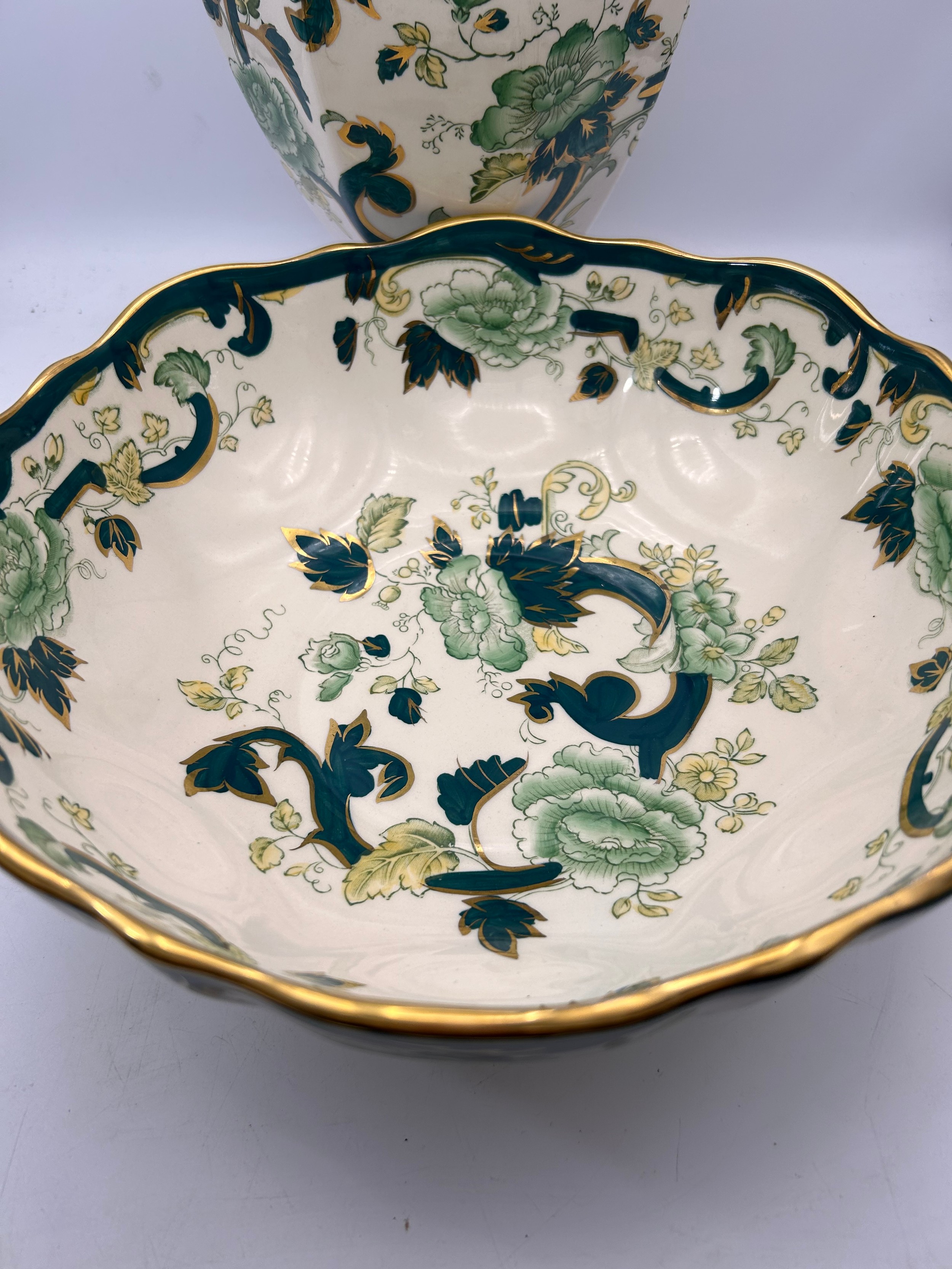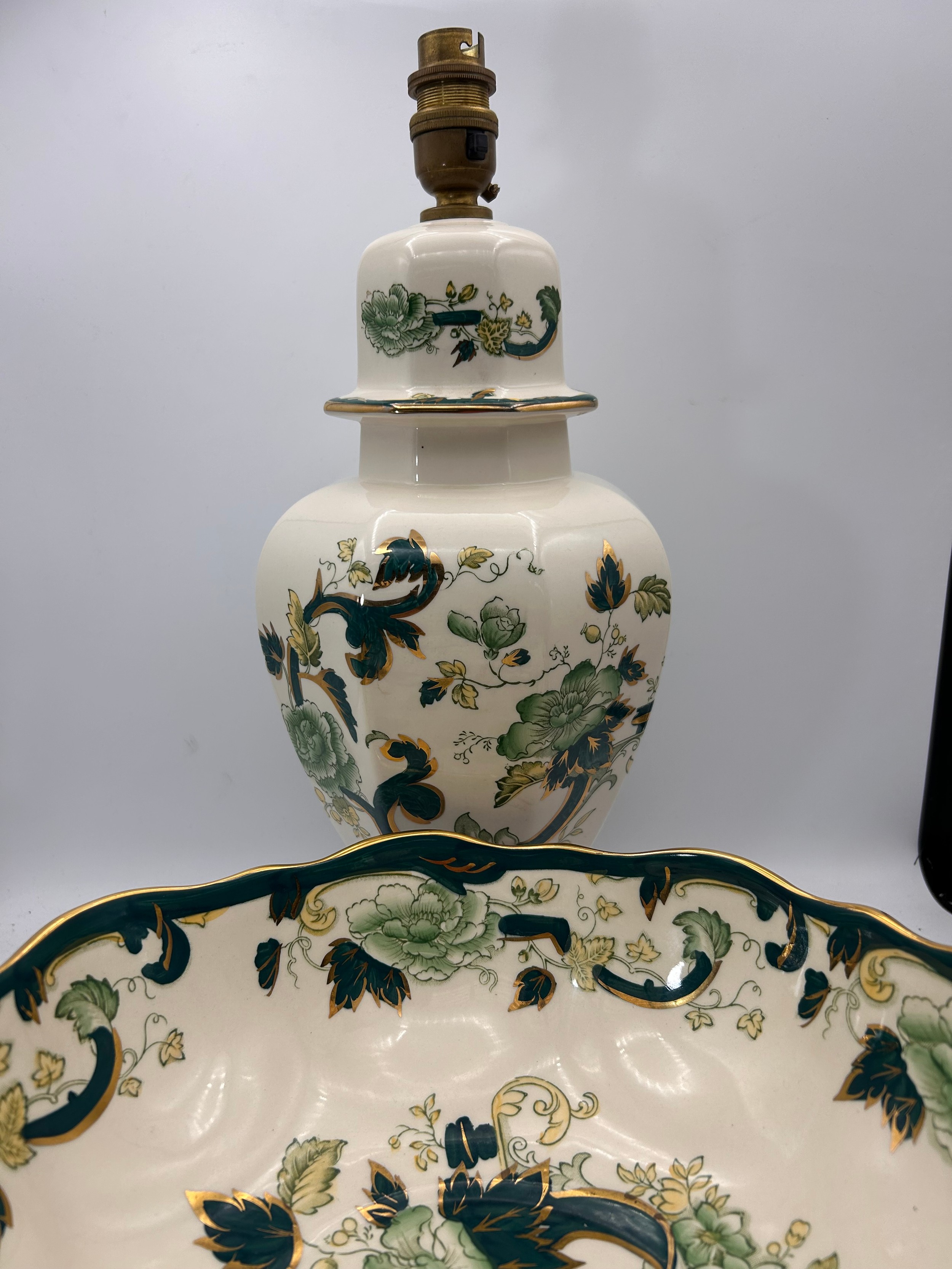 Masons Chartreuse Lamp Base And Bowl , 10" Diameter.