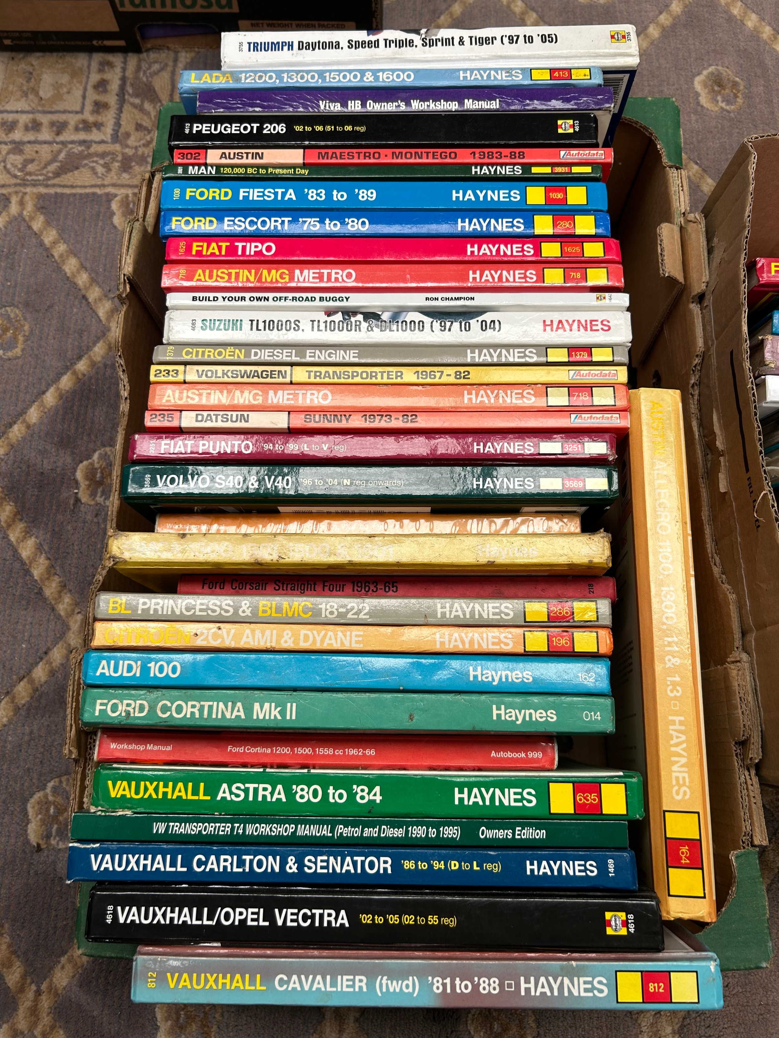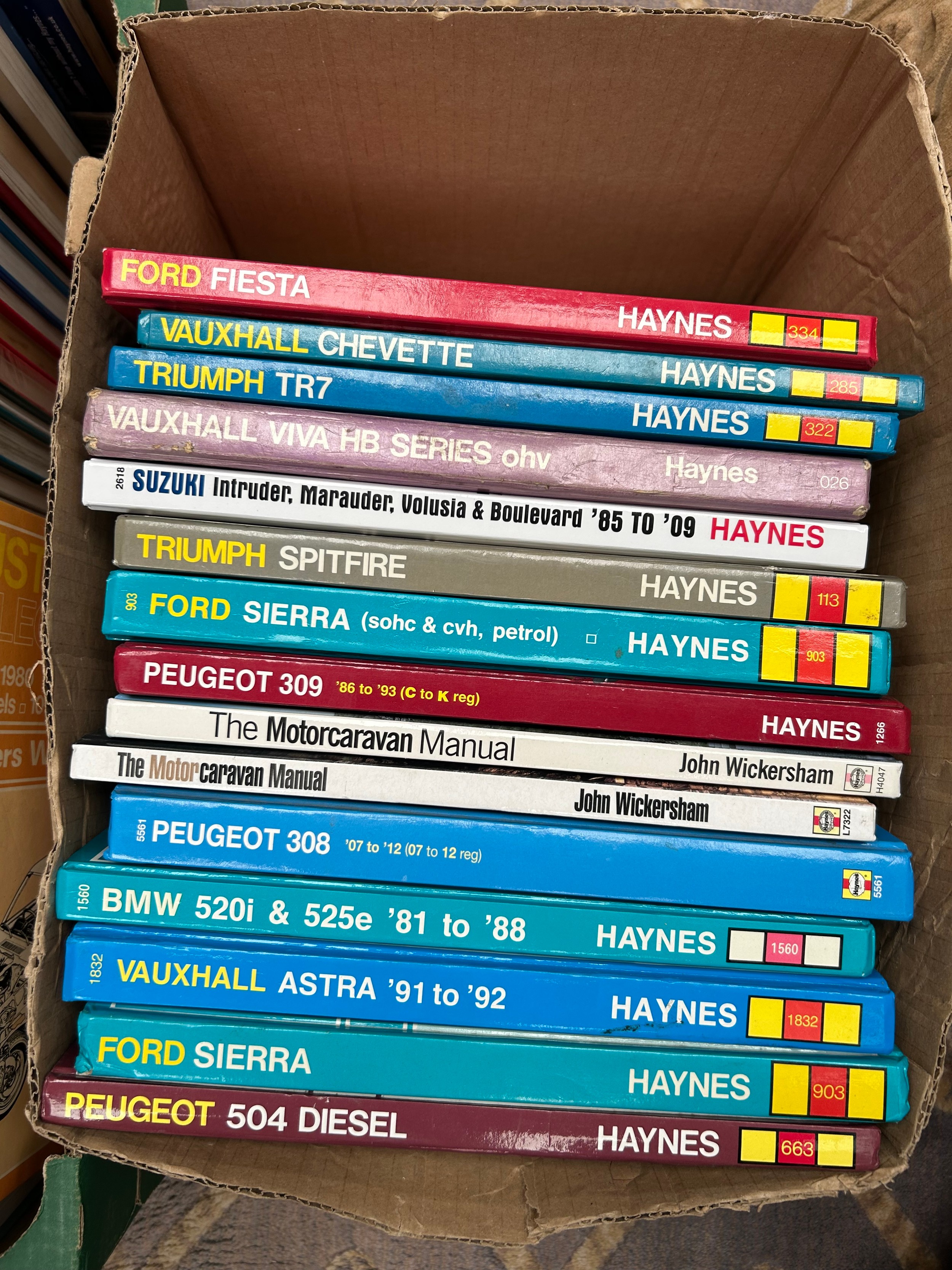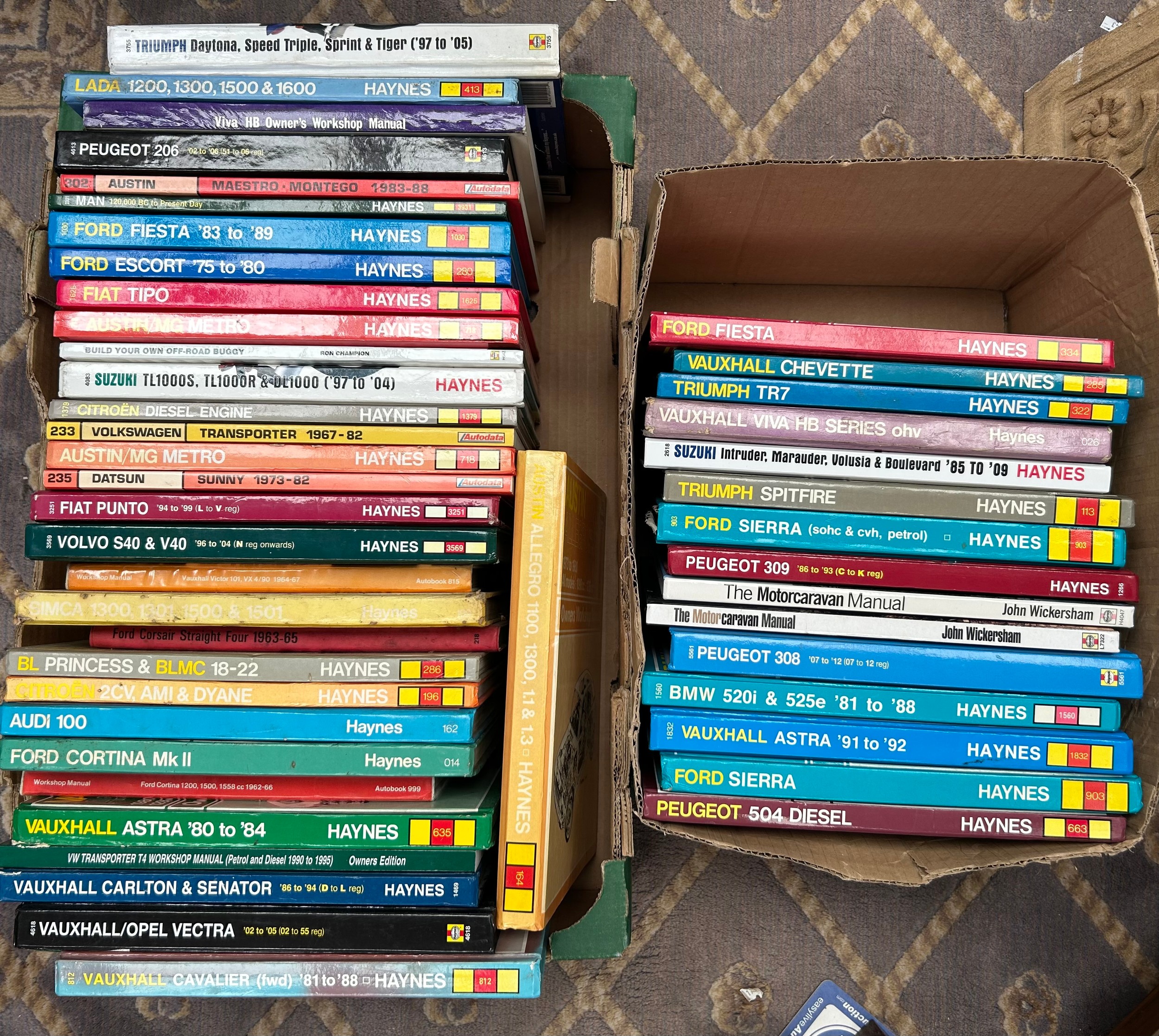 Two Boxes Of Haynes Vehicle Manuals.