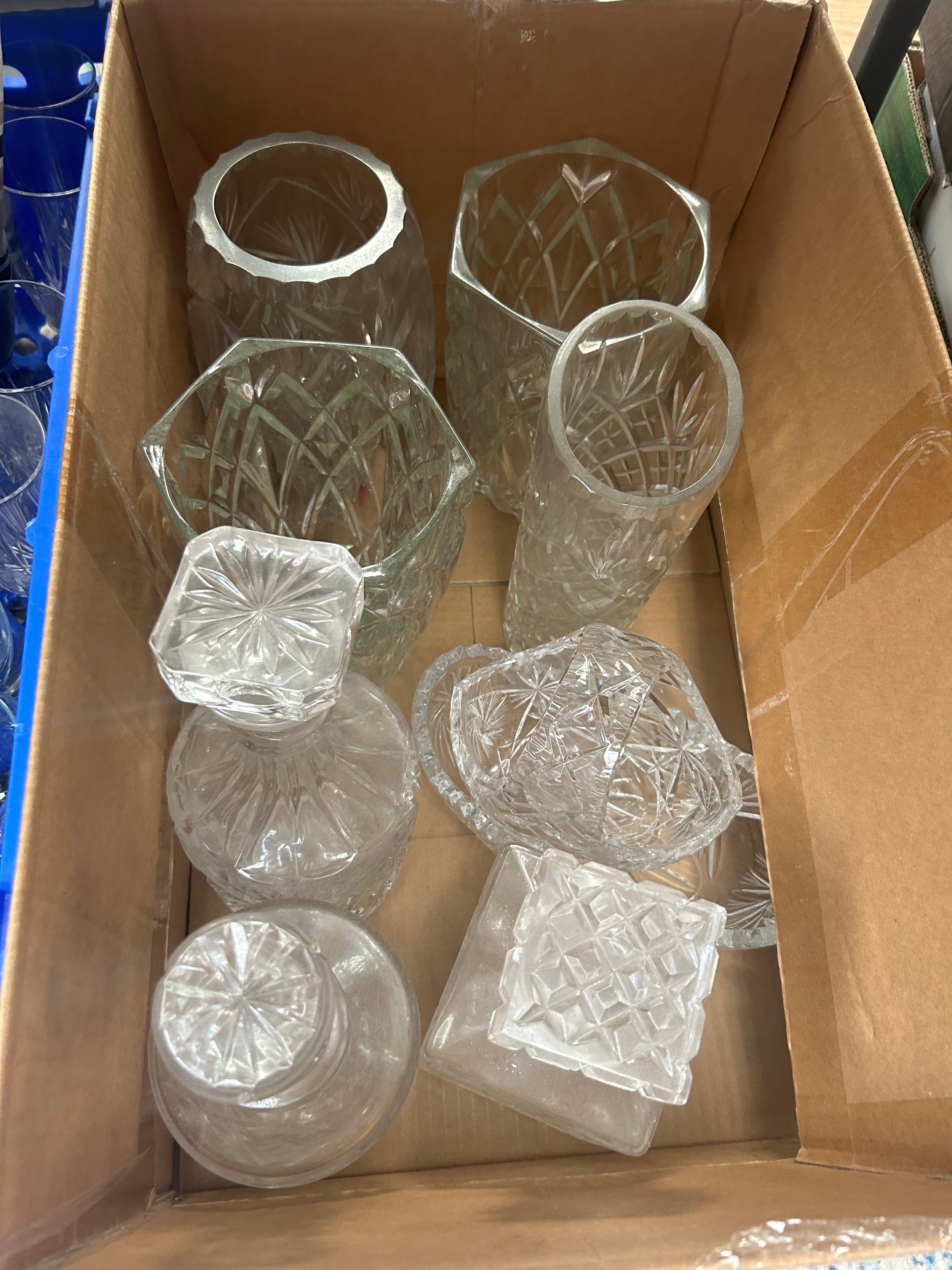 Box To Include Crystal And Glass Decanters, Vases Etc.