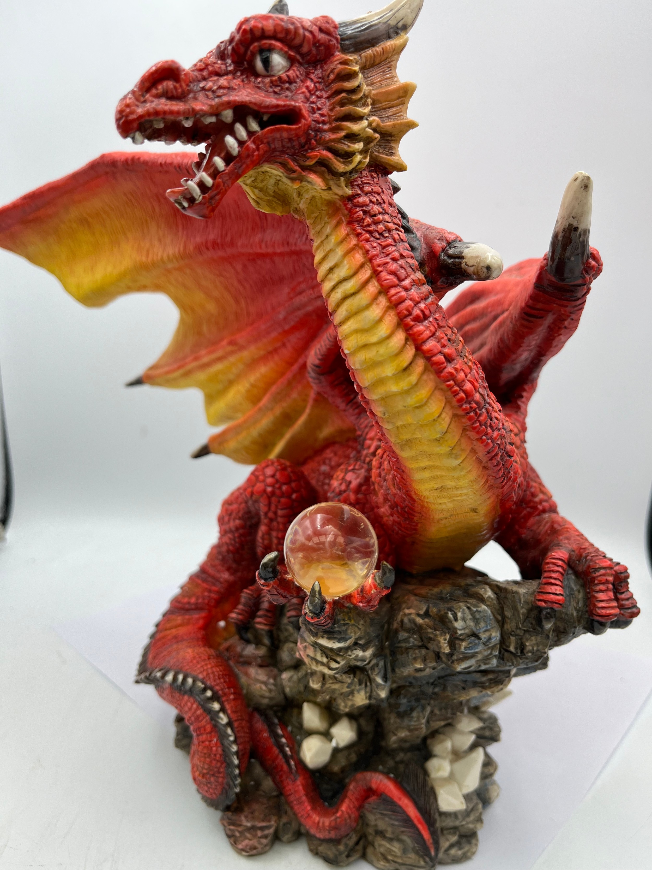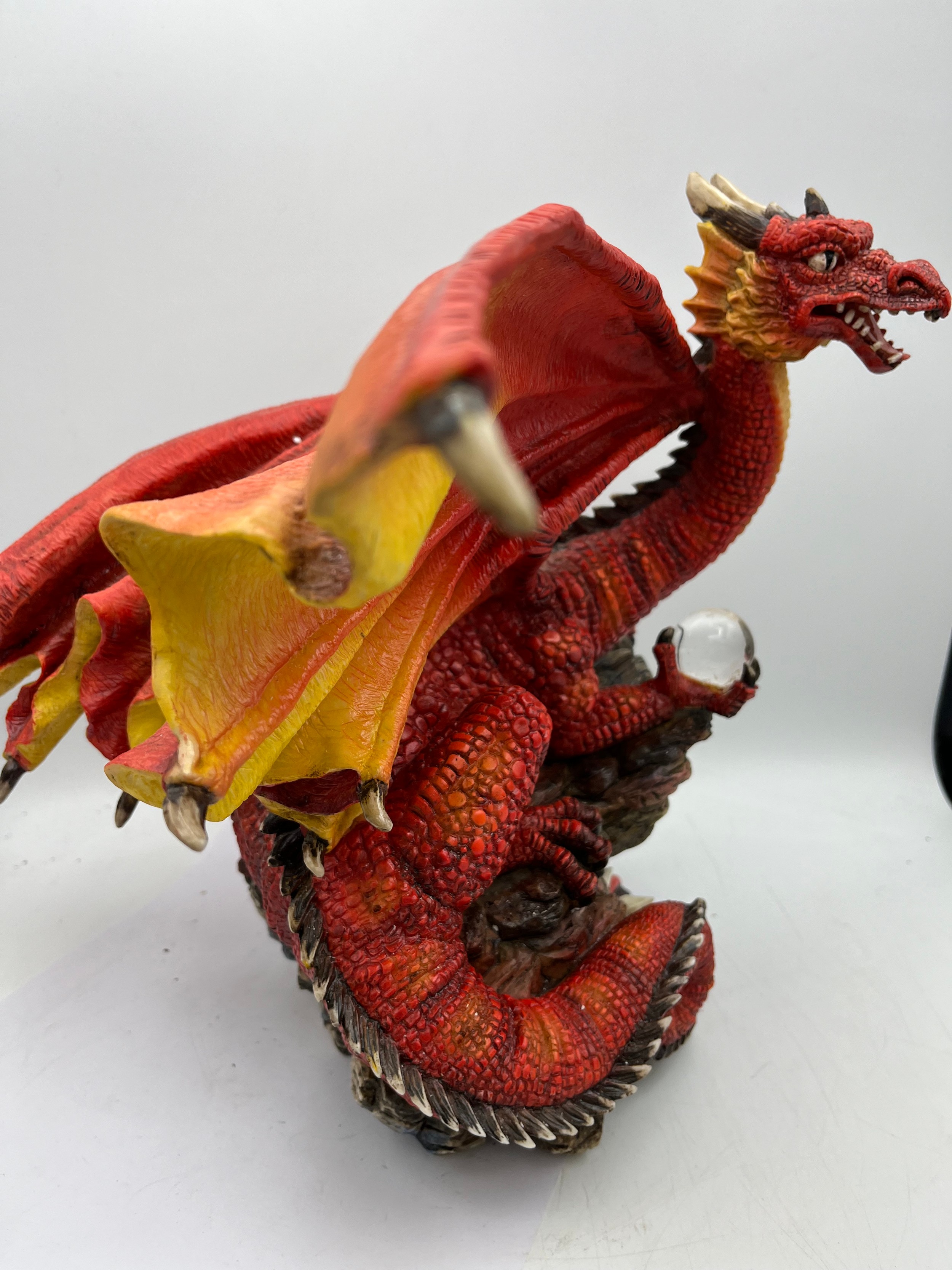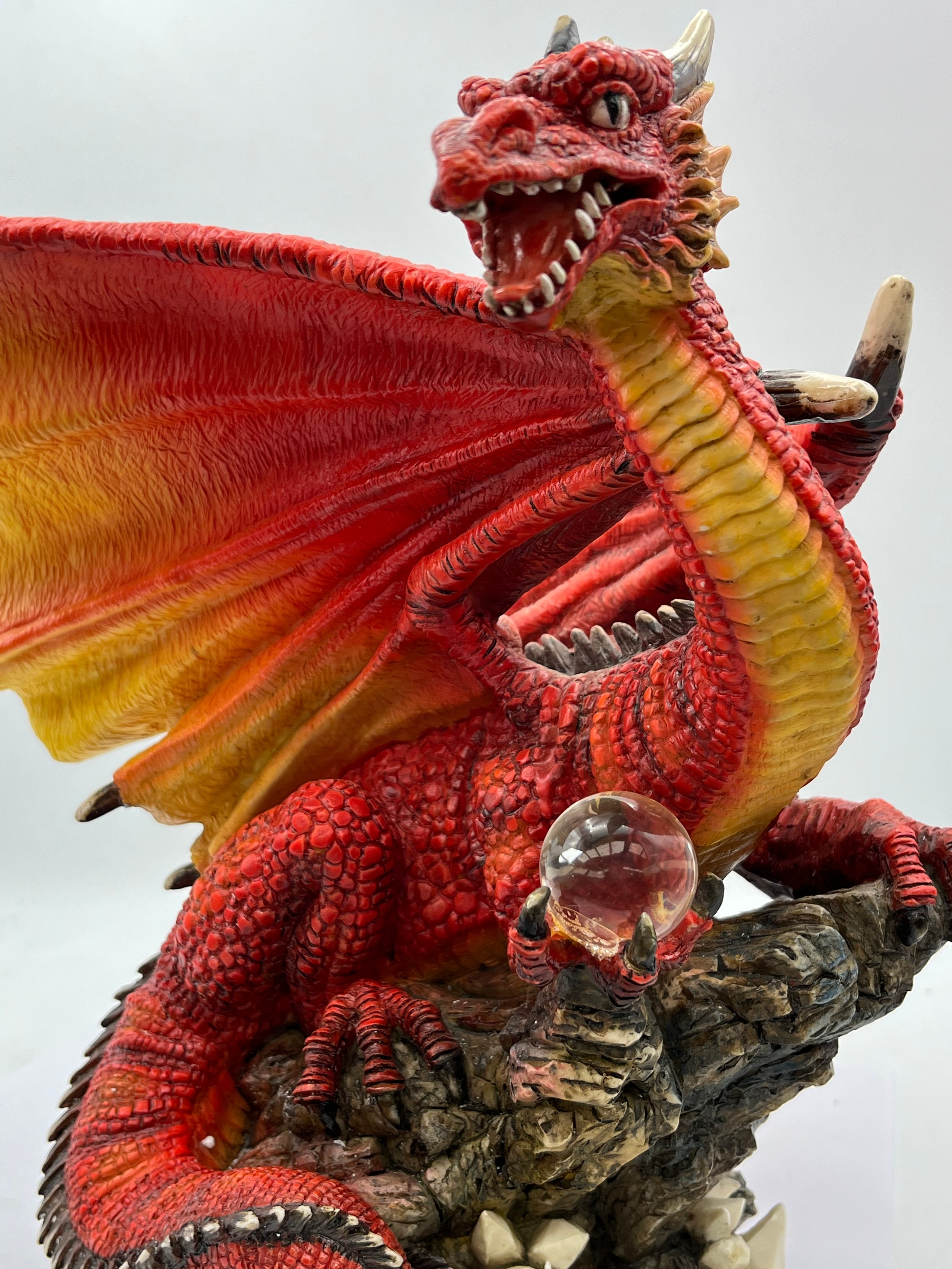 Pacific Giftware Large 1998 Red Dragon Holding Crystal Ball , Signed 12" x 13".