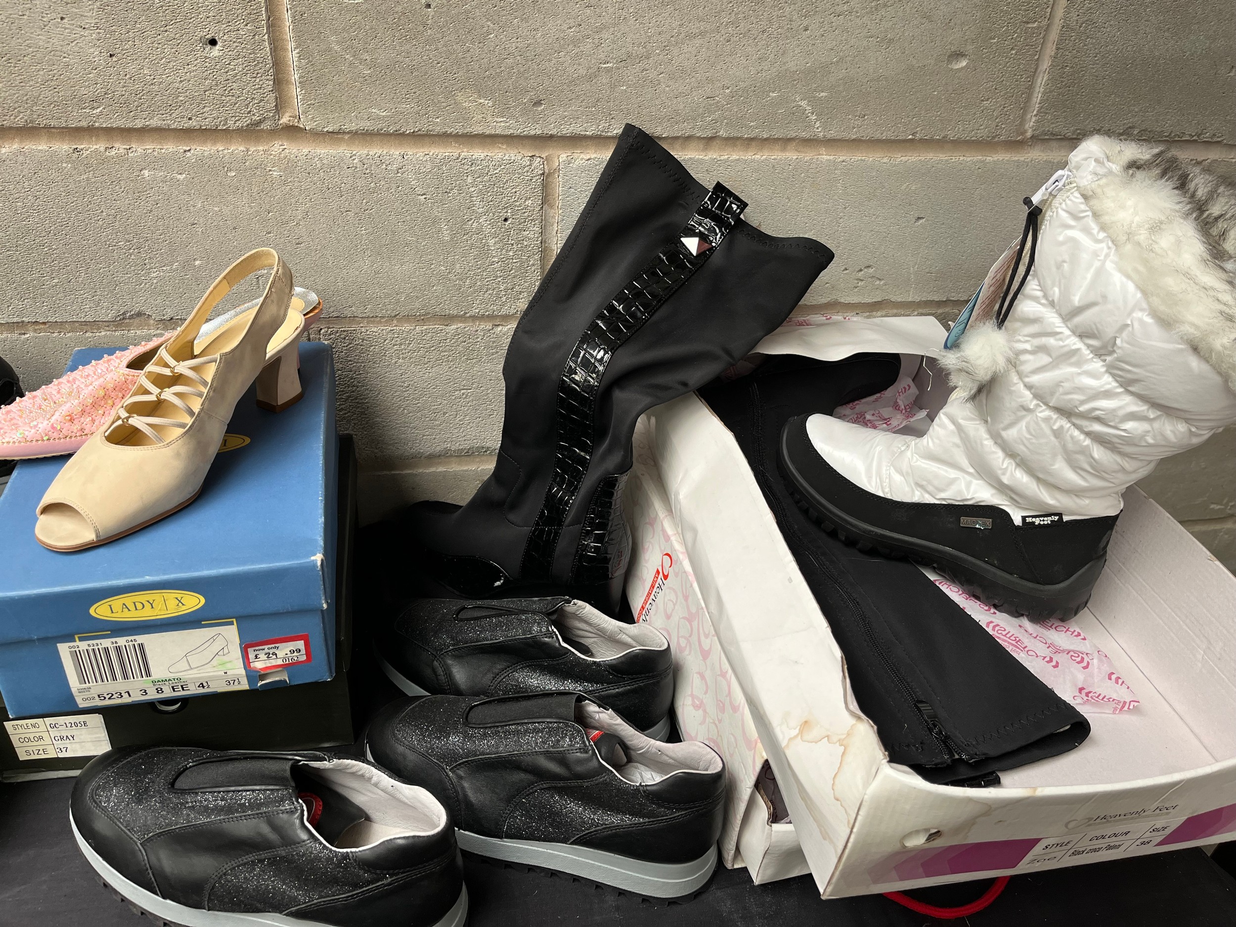 Nine Pairs Of Various Ladies Shoes And Boots, Some Boxed. Sizes 4/5.
