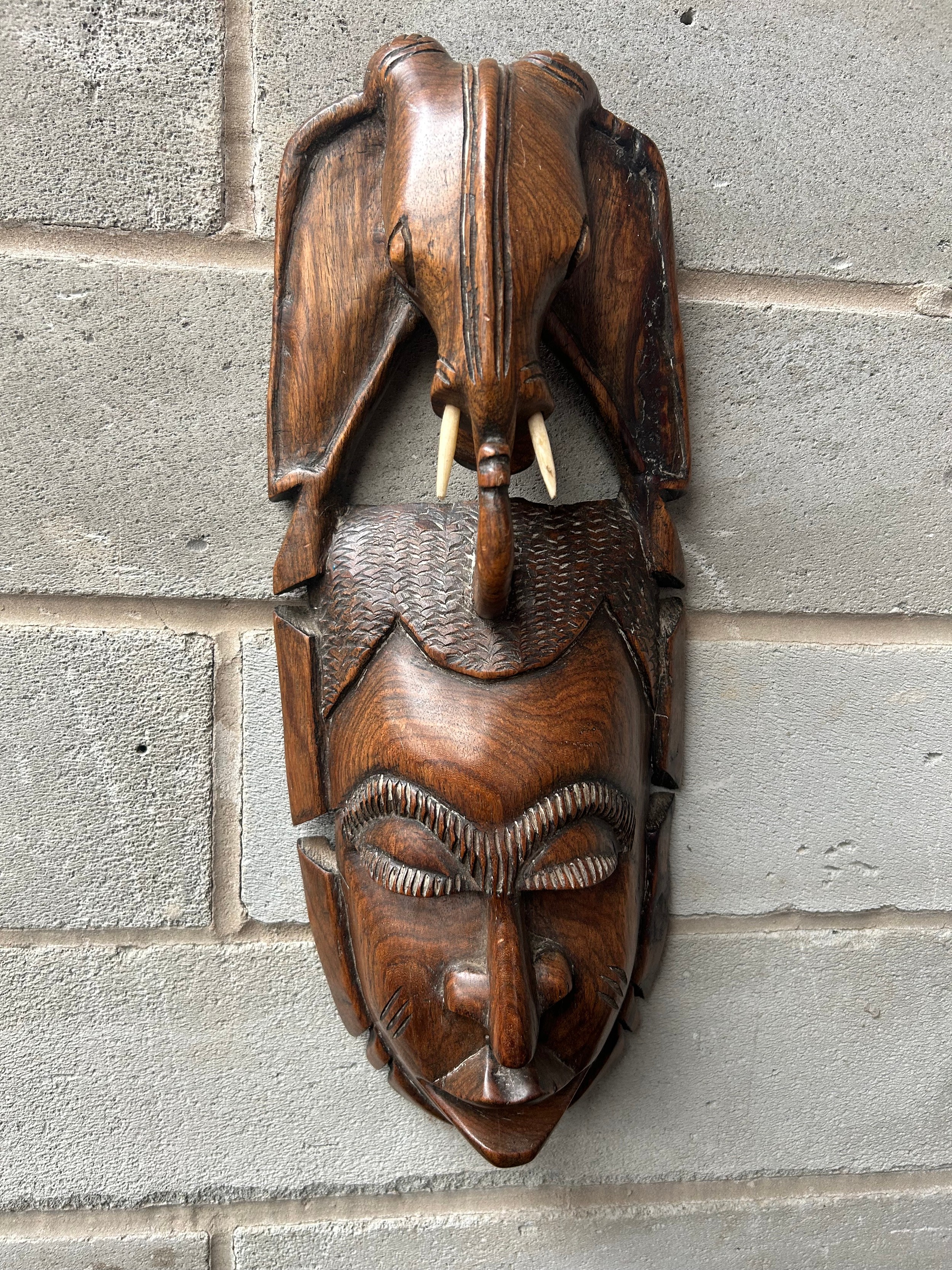 Hand Carved Mask With Elephant Detail 17" x 7".