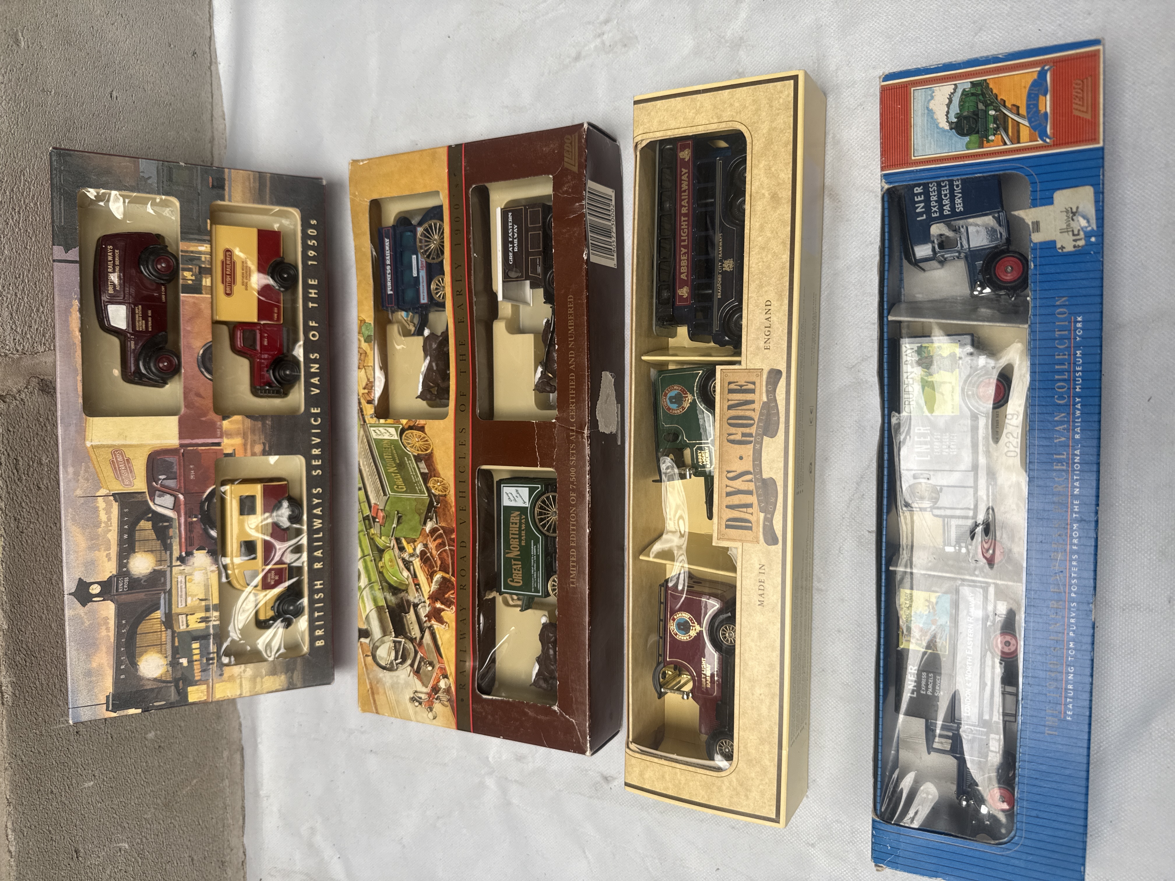 A collection of four Lledo ‘Days Gone’ die-cast model vehicle sets, primarily depicting British railway-themed transport. The lot includes: