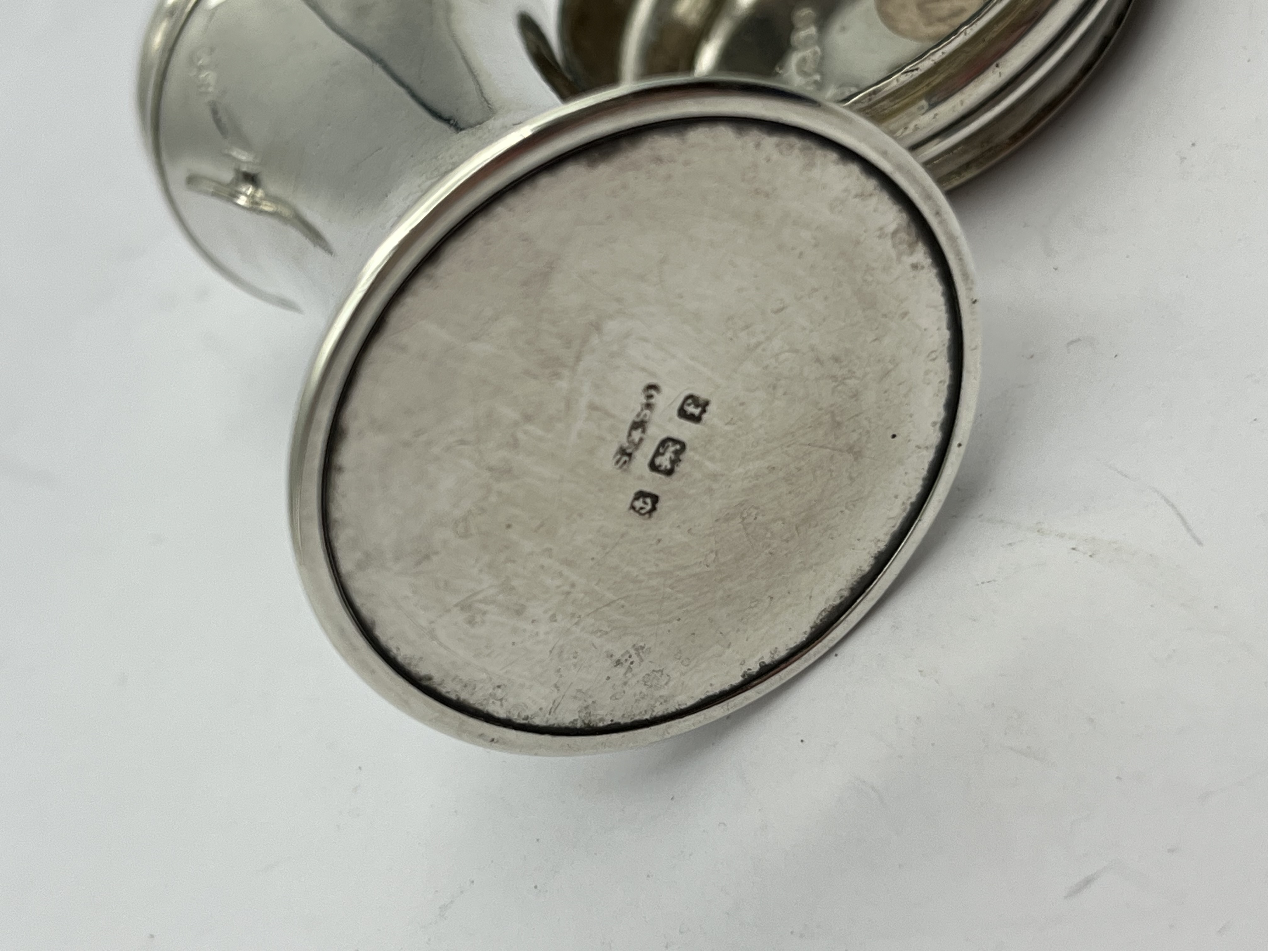 The tapering silver shaker’s base displays British hallmarks and a “S&C CO” or “SEC CO” maker’s mark.