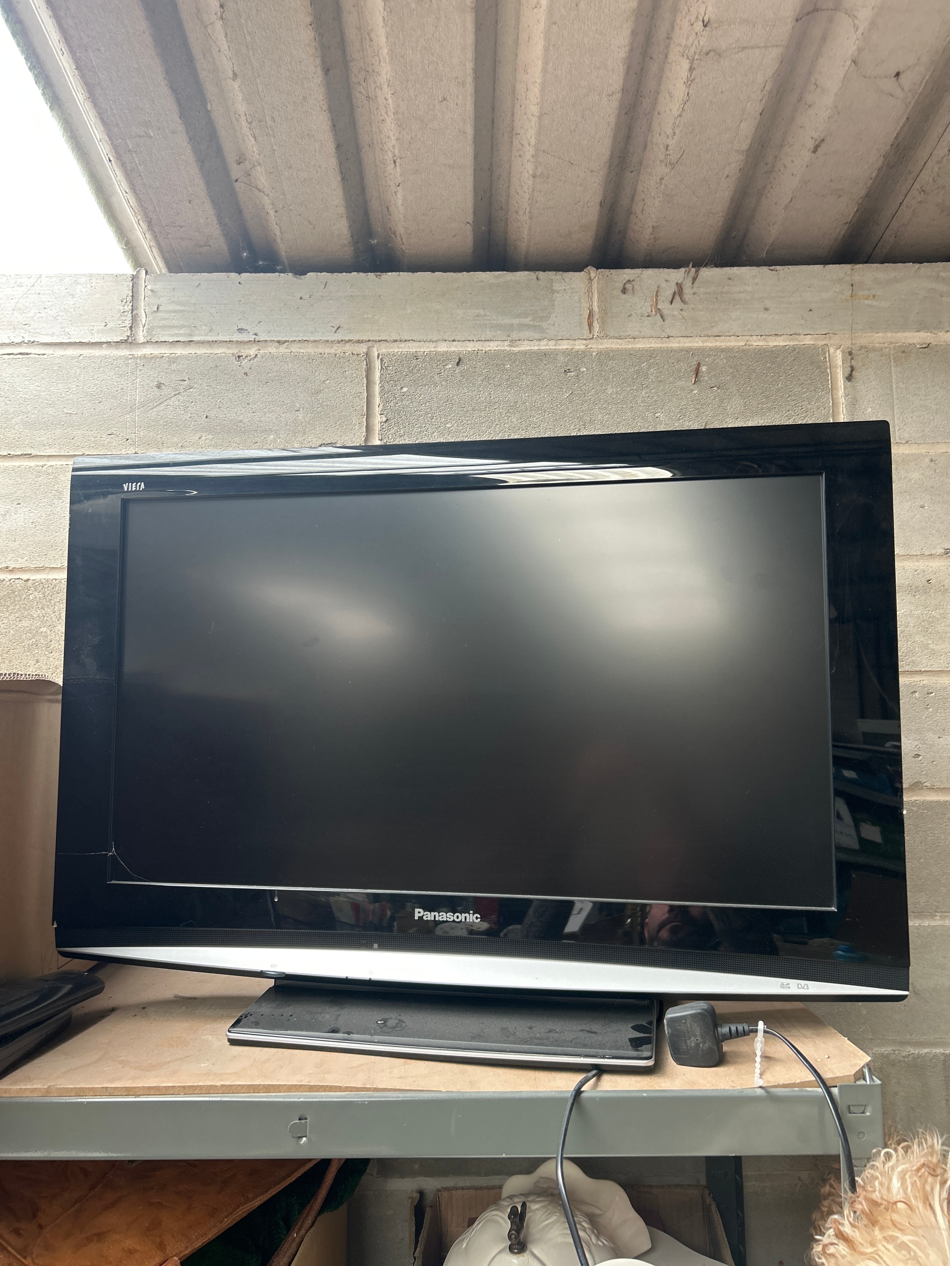 A Panasonic VIERA 31” LCD television, model TX-32LXD85. This flat-screen unit is constructed of black plastic with a glass screen. The manufacturer’s name ‘Panasonic’ is centered on the lower bezel, with ‘VIERA’ visible on the upper left bezel and a ‘DVB’ logo on the lower right bezel.