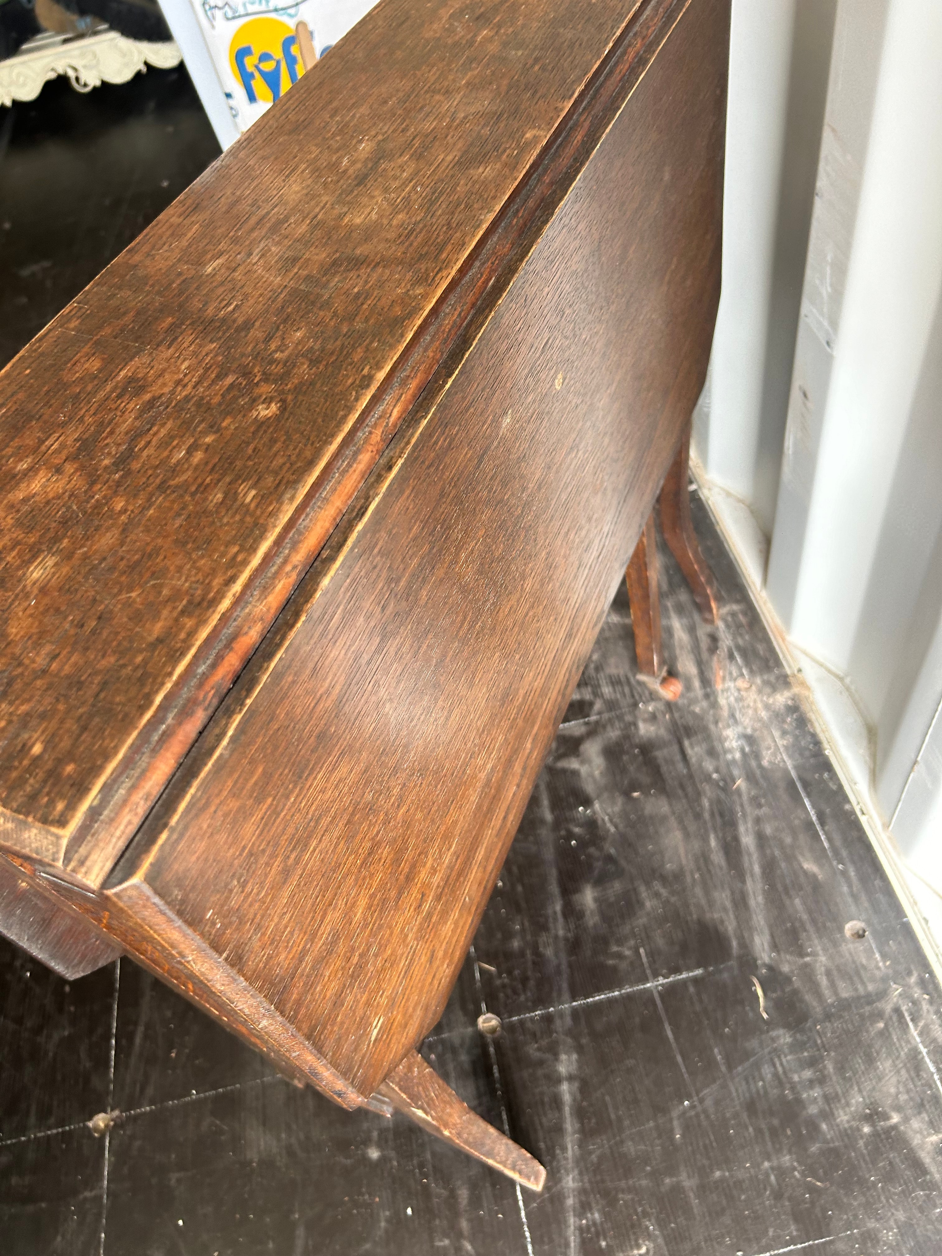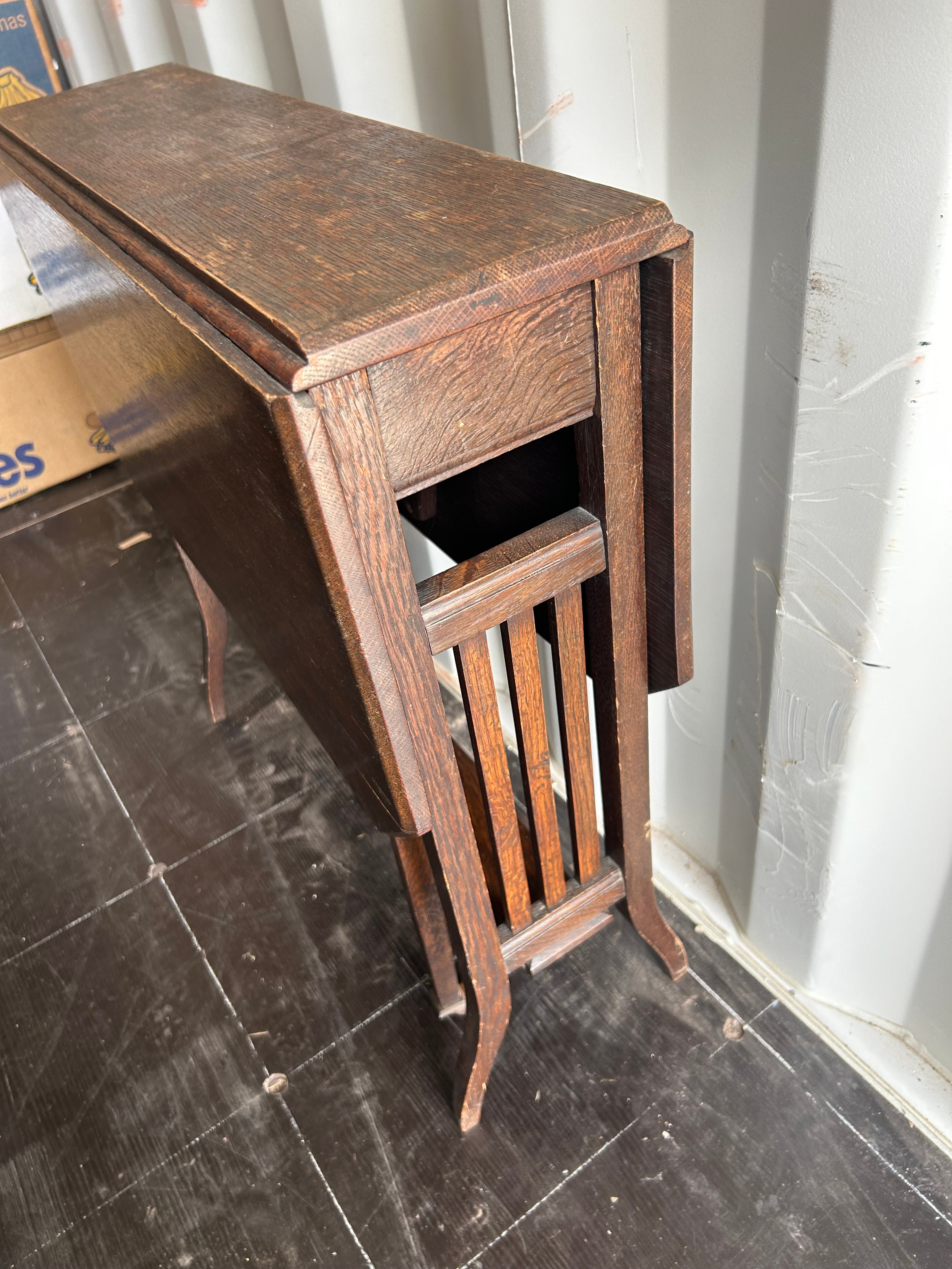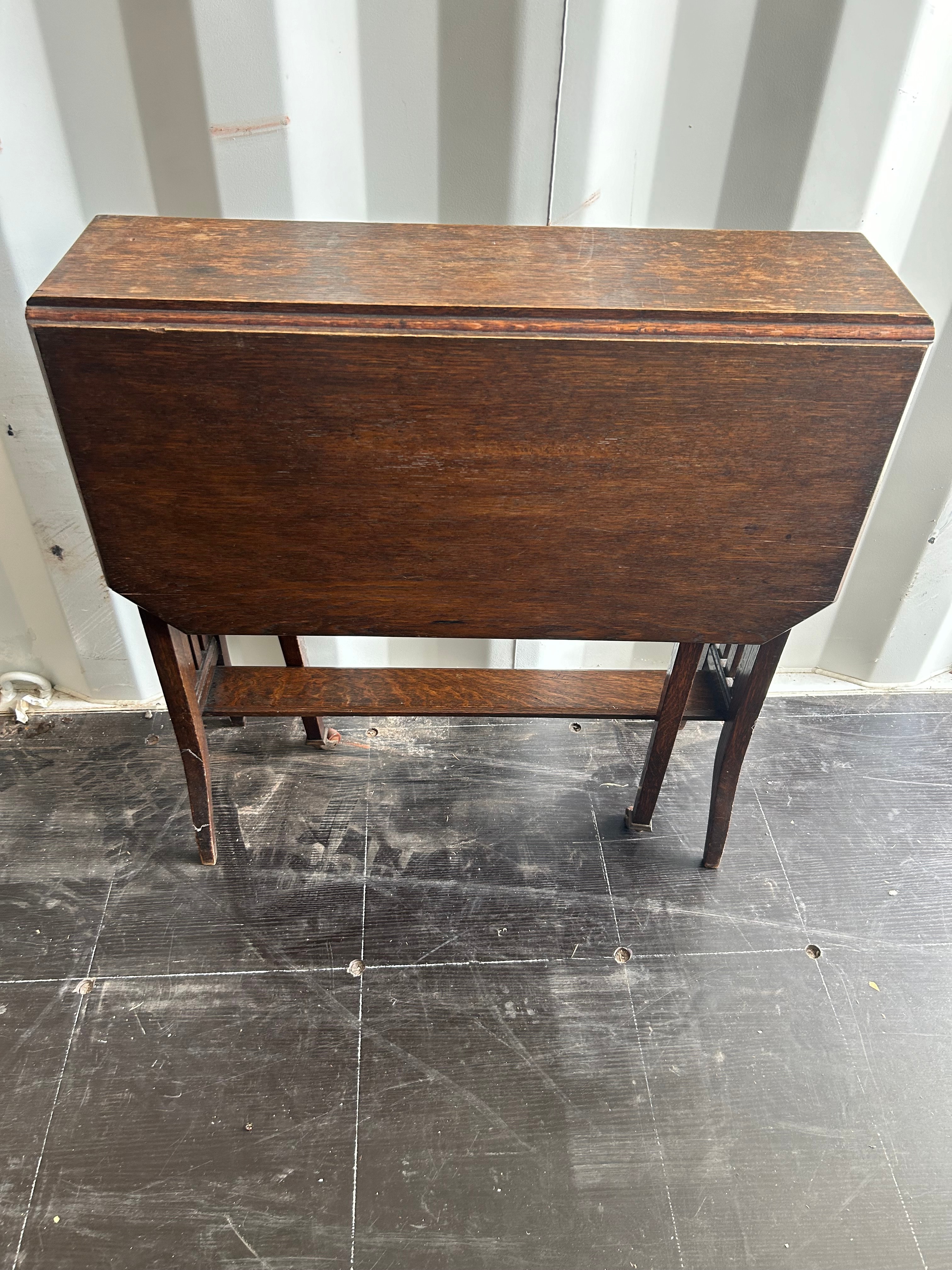 An Edwardian Mahogany Drop-Leaf Sutherland Table, featuring a rectangular central fixed top flanked by two hinged drop leaves. The table is supported by straight legs with a subtle outward flare, connected by a lower stretcher shelf and slatted end supports.