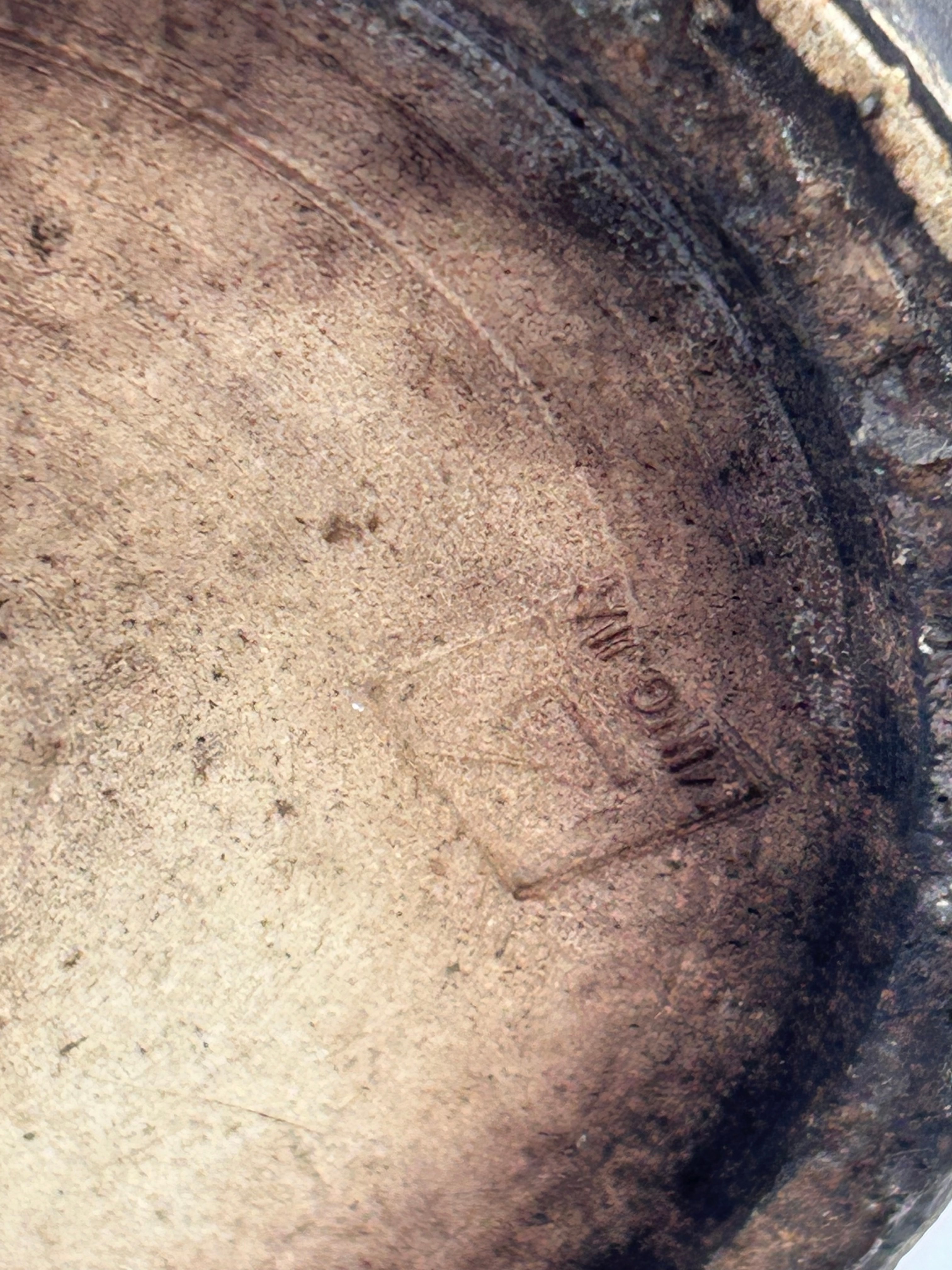 An unglazed stoneware vase or vessel, cylindrical with a gently flared rim, exhibiting a rustic artisanal style. The dark brown surface is extensively decorated with incised Chinese calligraphy and a textured, relief pattern resembling a scaled dragon or an abstract motif. A prominent character, ‘福’ (Fú), meaning ‘blessing’ or ‘good fortune,’ is highlighted in black on one side. The base features an impressed mark, likely ‘宜興’ (Yíxīng), suggesting an origin or style associated with Yixing ware.