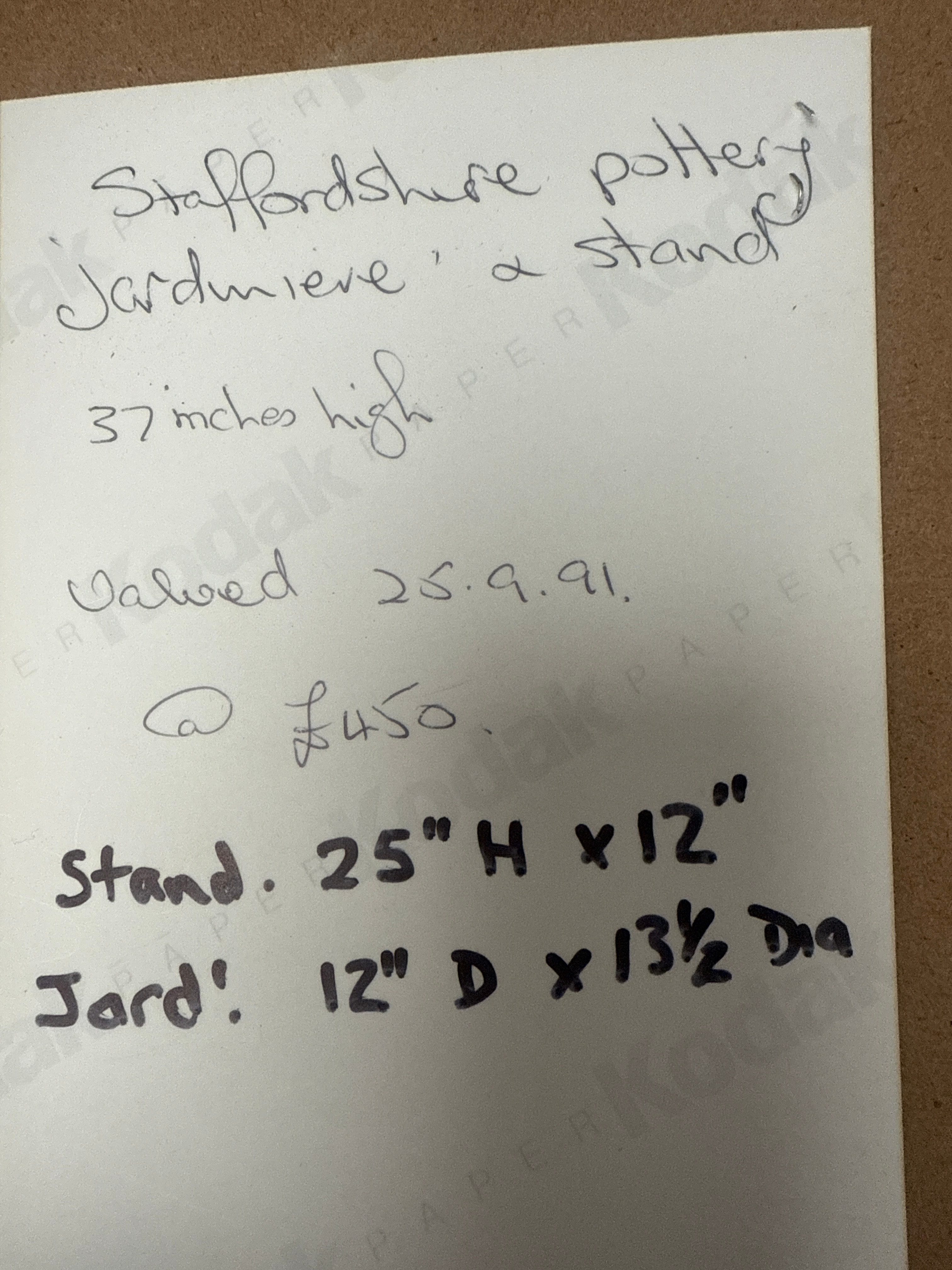 Jardinière: 12 inches deep x 13½ inches diameter.