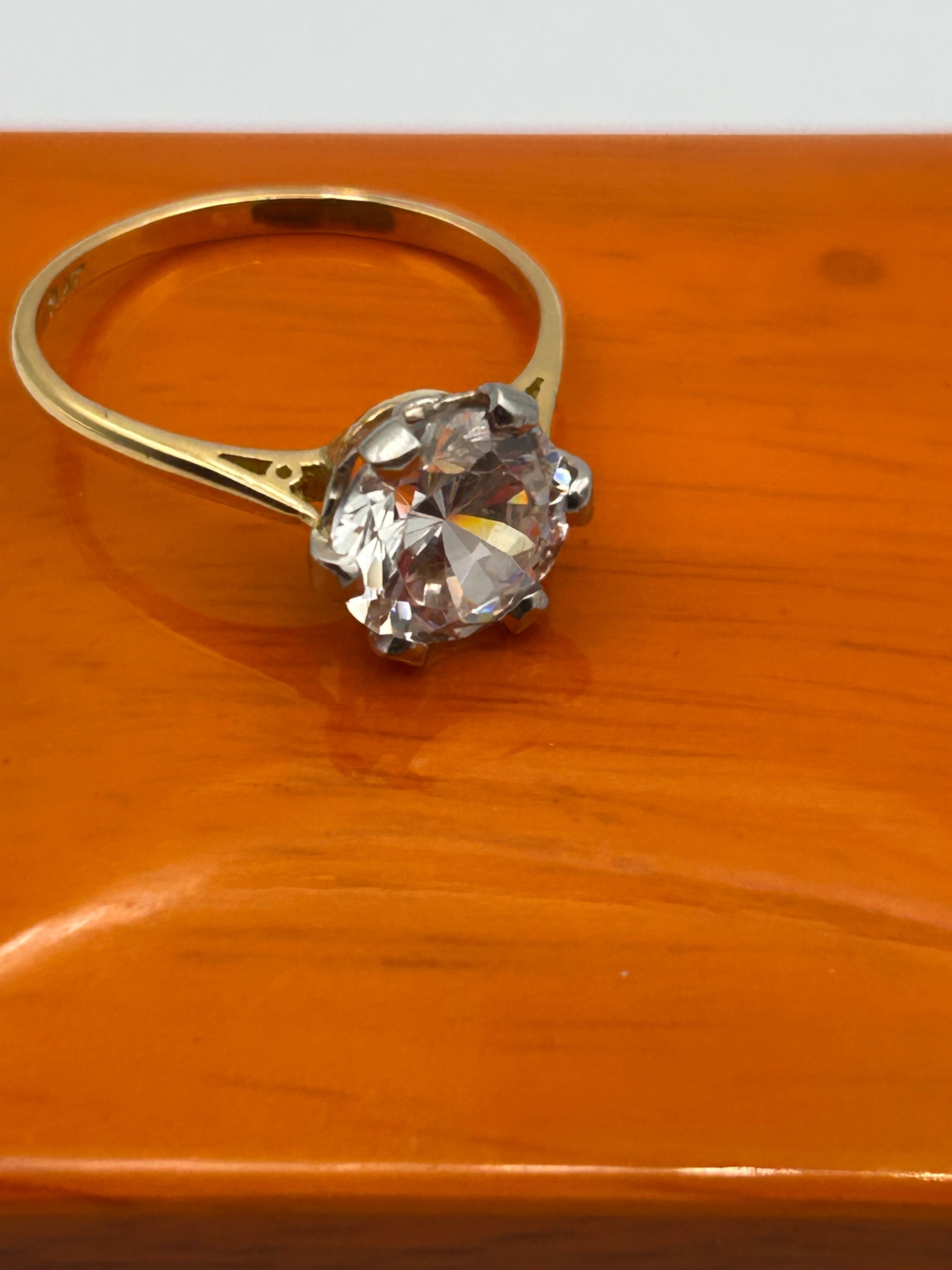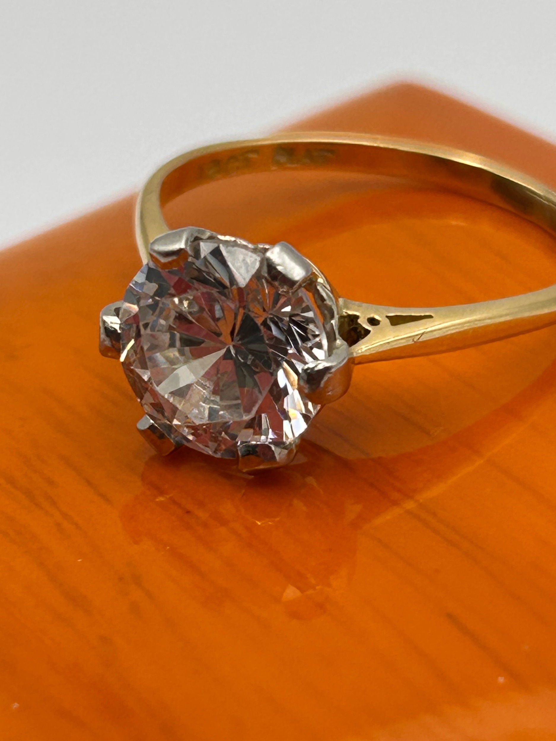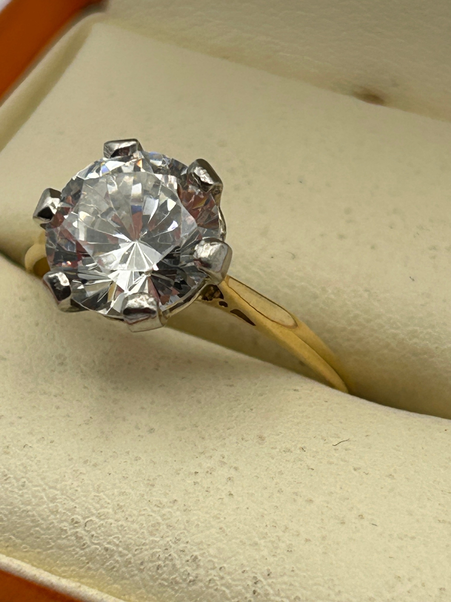 An 18ct Gold and Platinum Solitaire Ring, set with Clear Crystal Stone , Ring Size S,3.8g