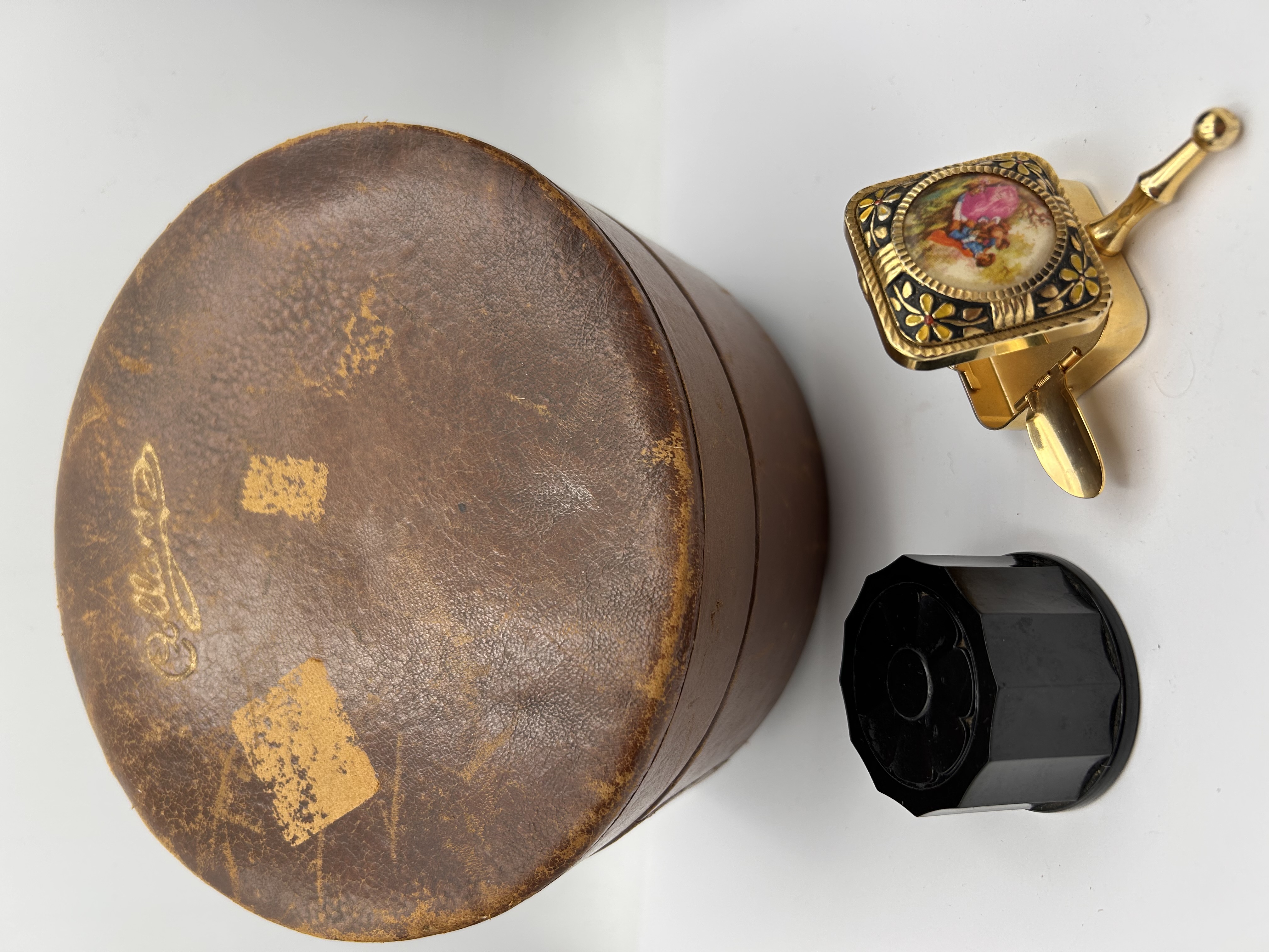 Vintage leather collar case , portable ash tray etc