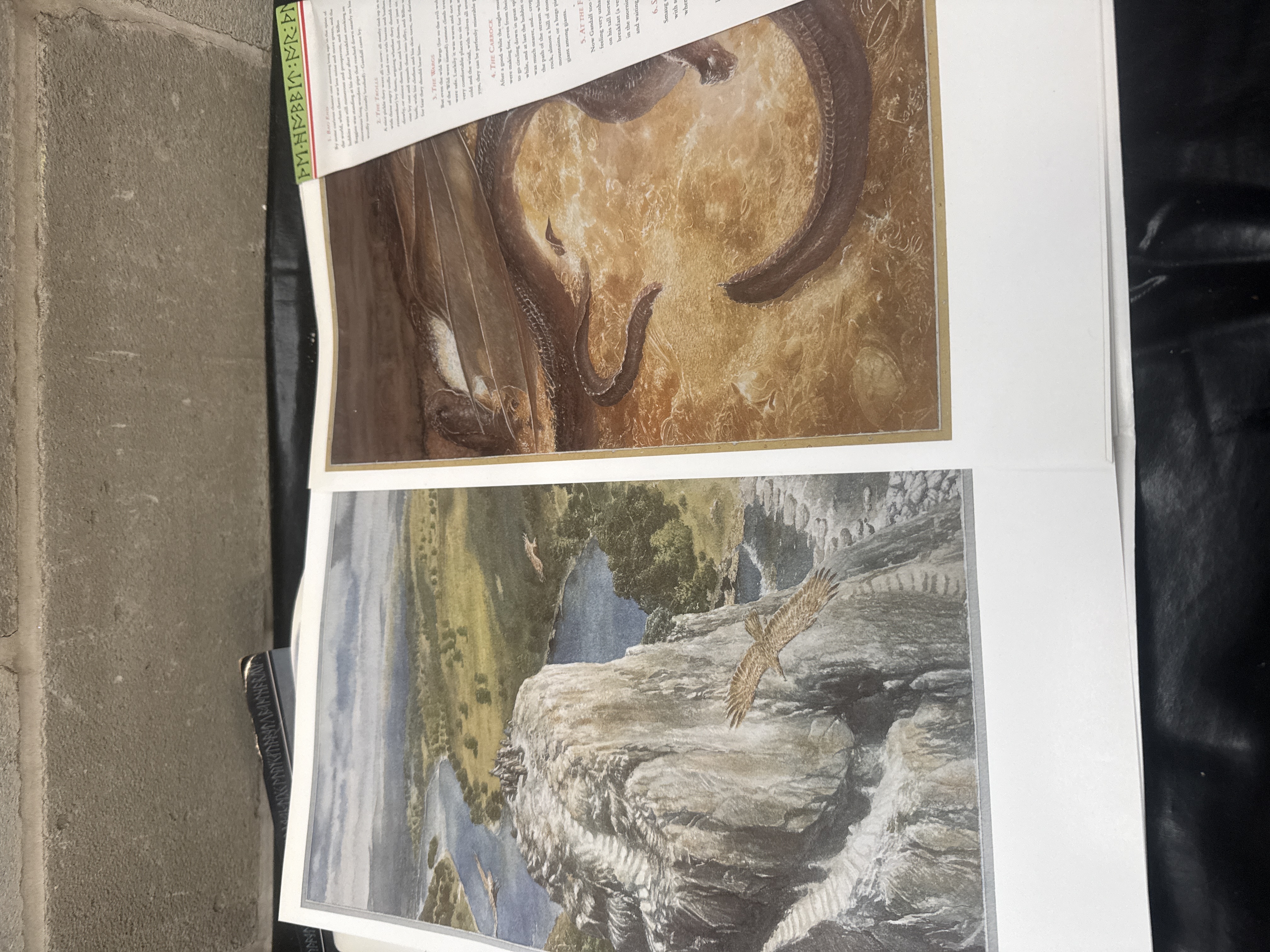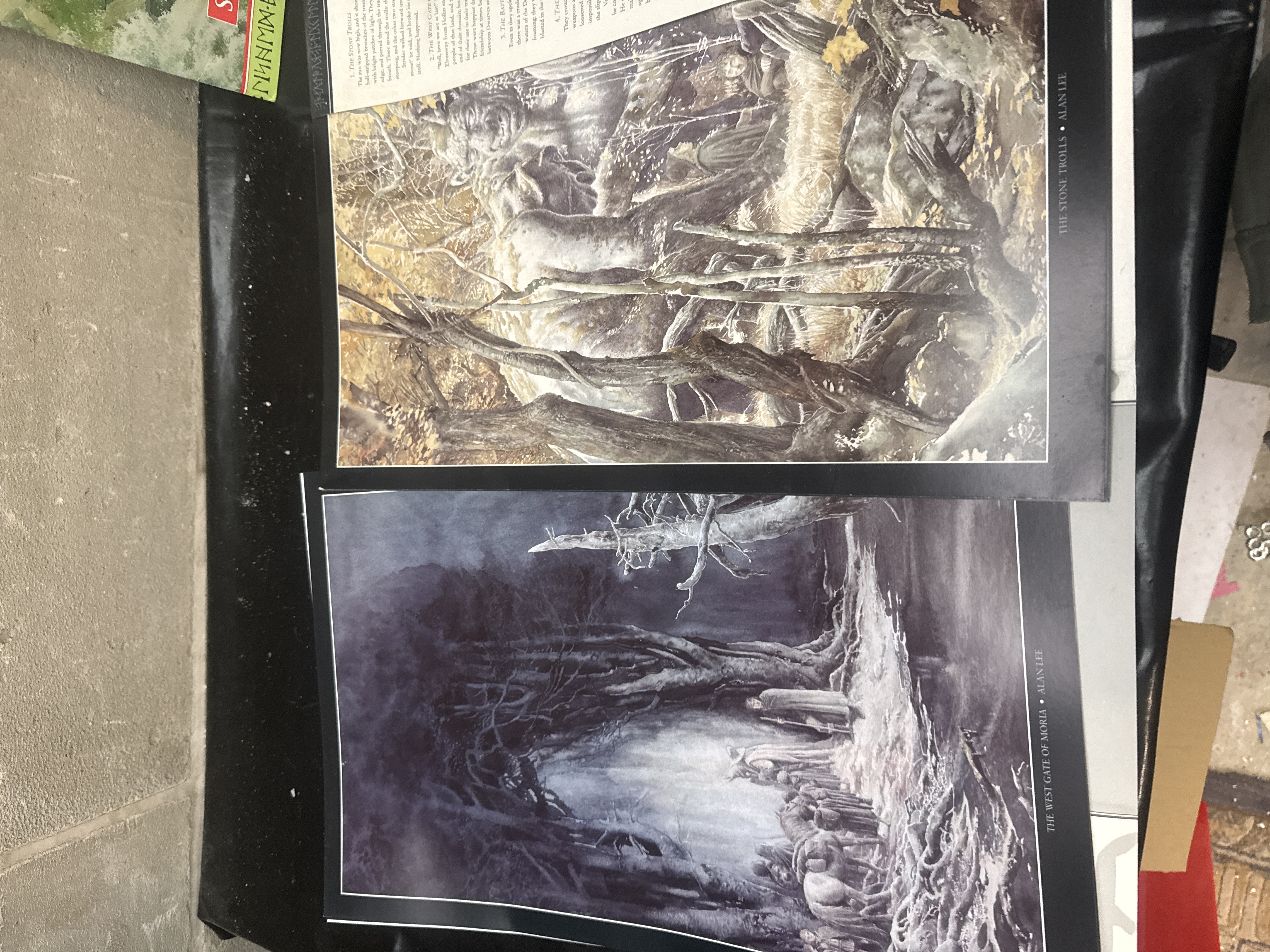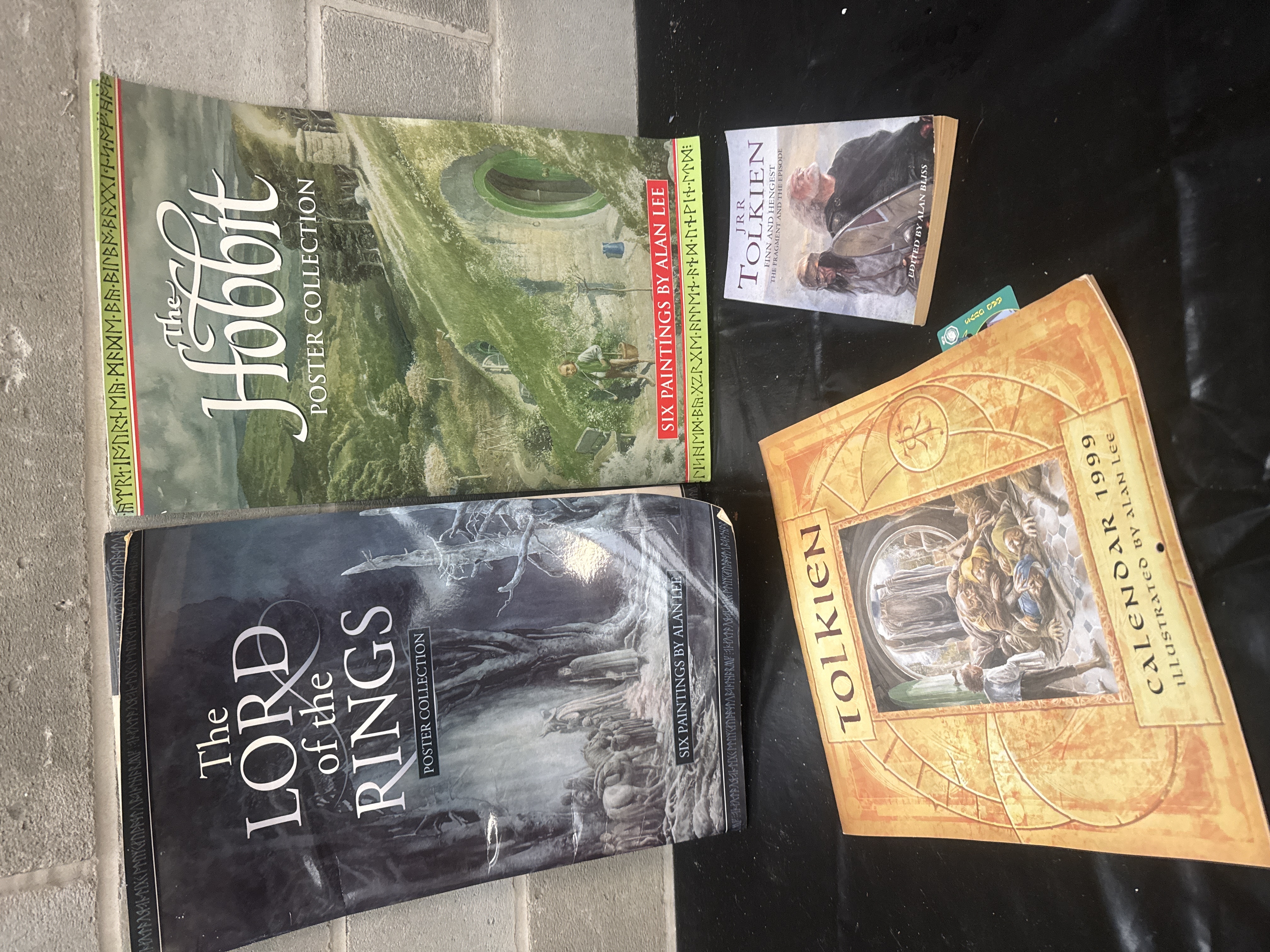 This collection is led by The Hobbit Poster Collection: Six Paintings by Alan Lee and a corresponding The Lord of the Rings Poster Collection. Both large-format portfolios contain six full-color plates of watercolor paintings by Alan Lee, featuring scenes such as The Stone Trolls, The West Gate of Moria, and Smaug. The group also includes a Tolkien Calendar 1999 with illustrations by Alan Lee and a trade paperback edition of Finn and Hengest: The Fragment and the Episode, edited by Alan Bliss.