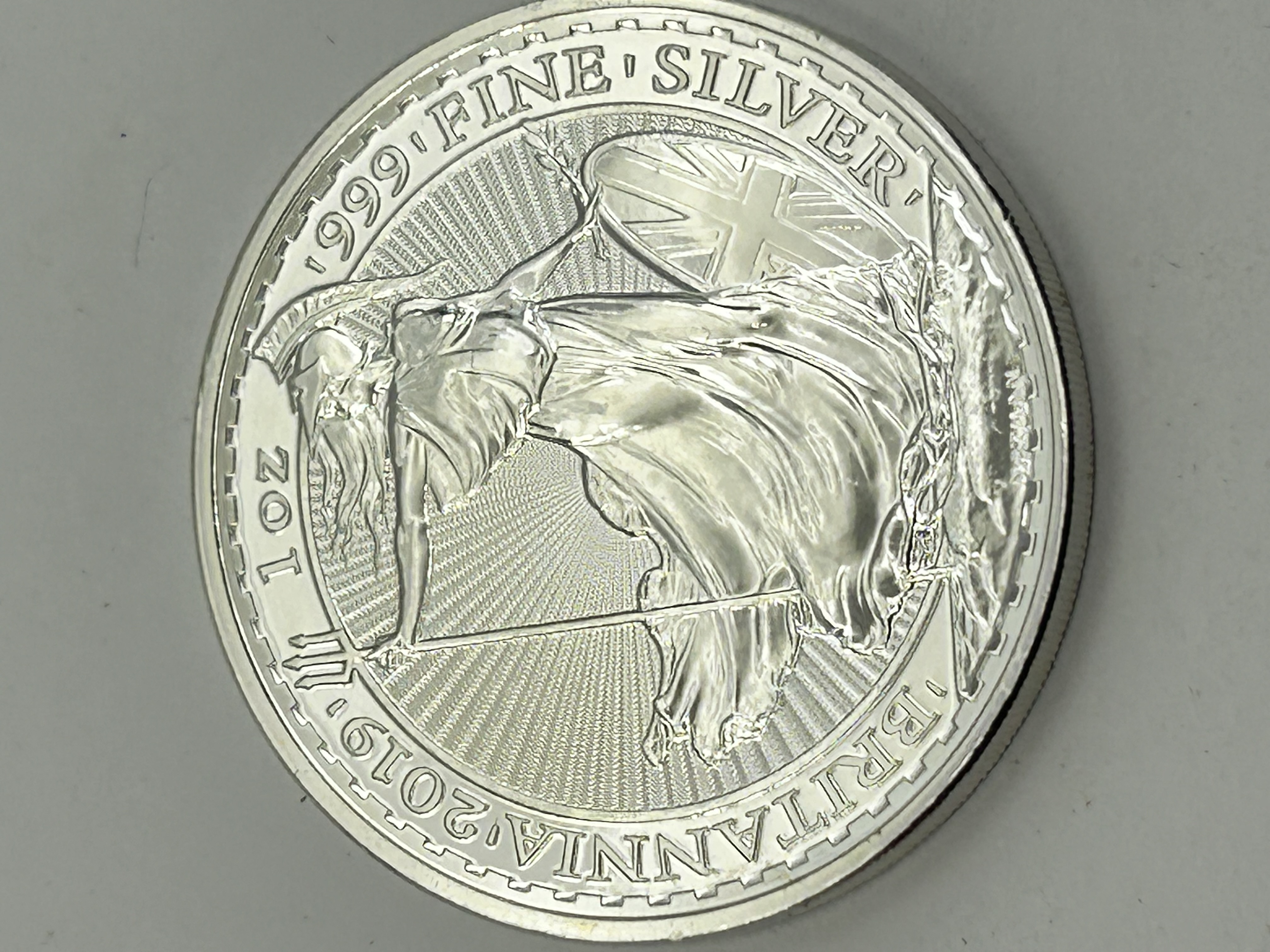 · 999 · FINE · SILVER. The coin features a reeded edge and sharp relief.