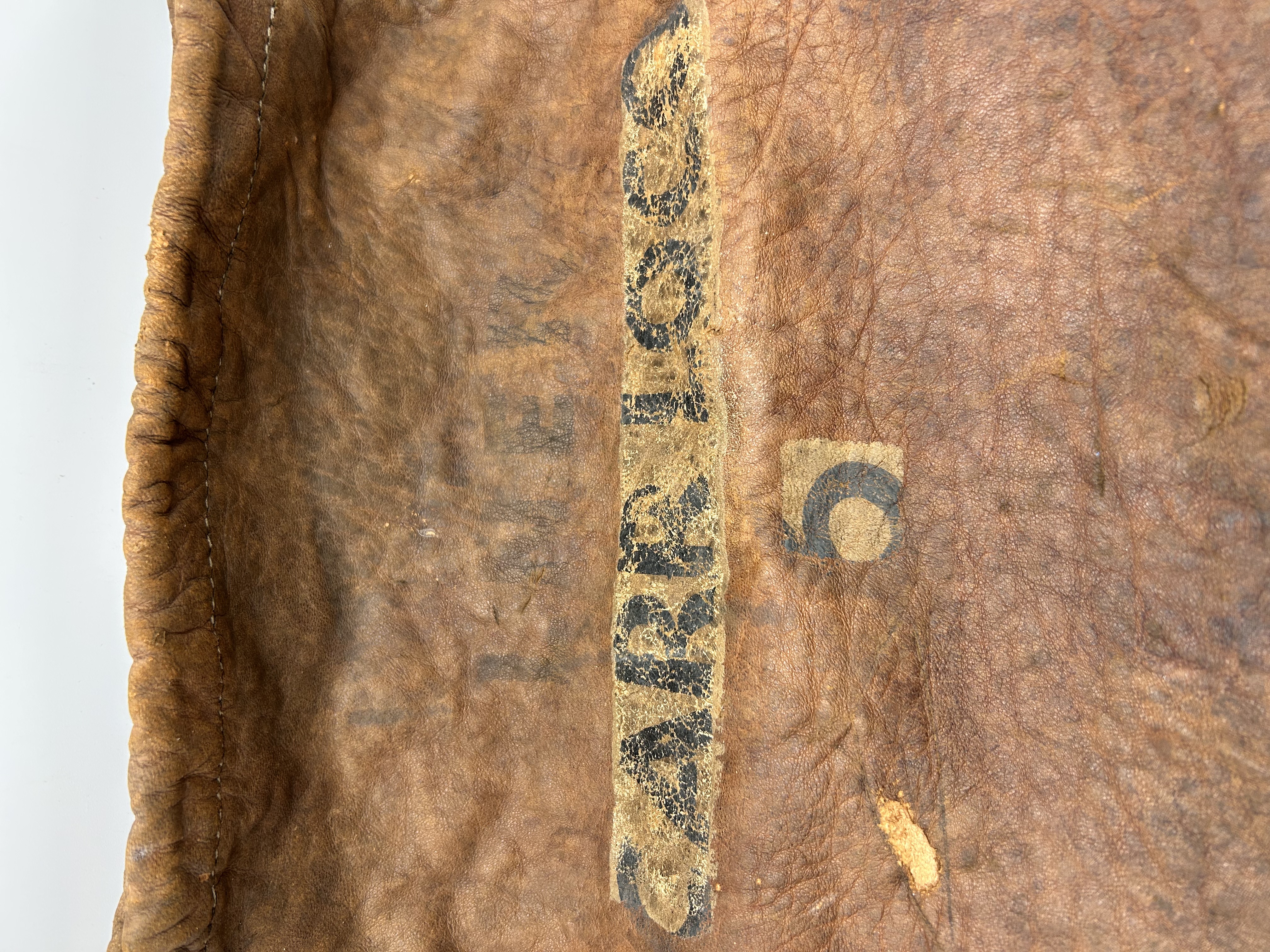 The item is constructed with a drawstring at the top edge for attachment. A vertical rectangular patch on the front displays black text reading CARR LOCO positioned next to a boxed numeral 5. Faint, illegible markings are present to the left of the patch.