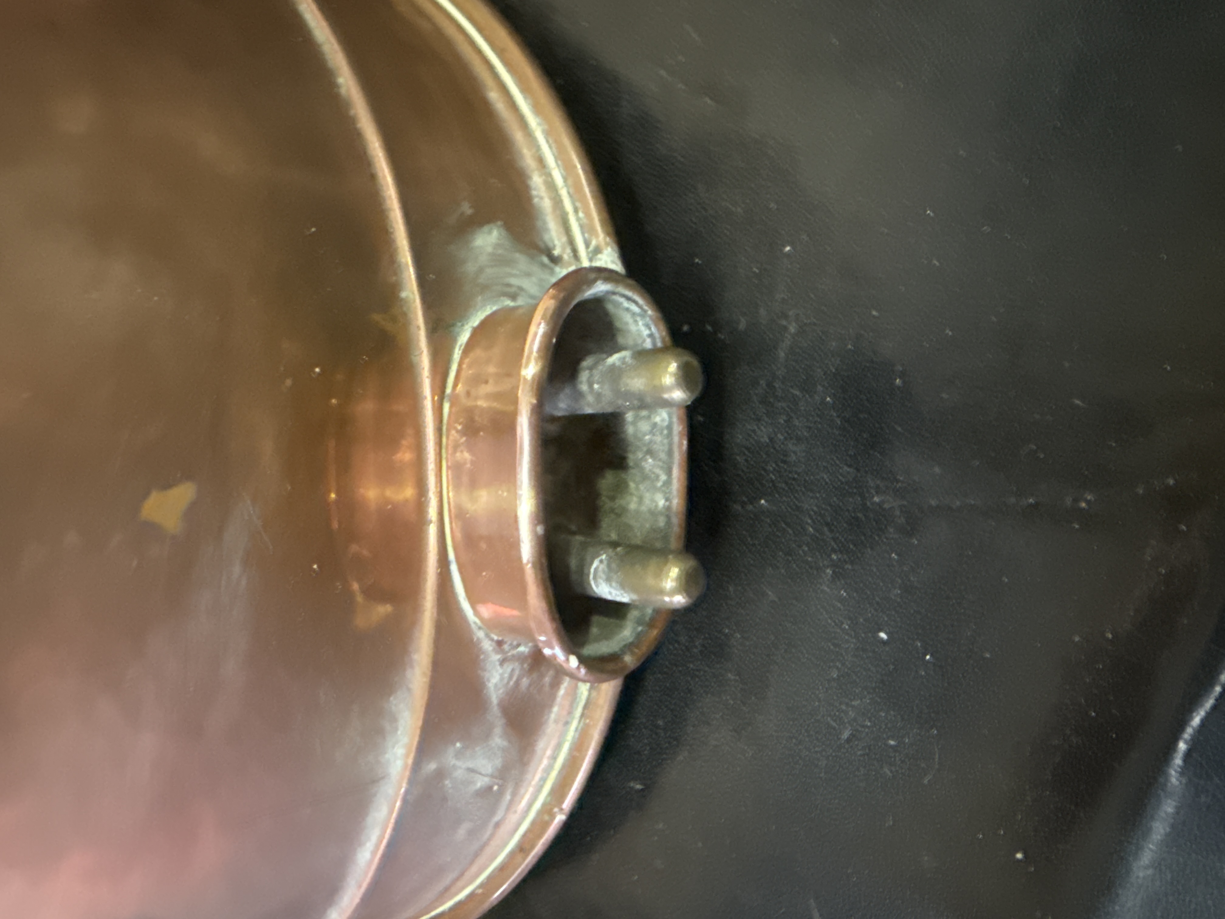 An Arts and Crafts style electric tea kettle and separate lid constructed from copper. The kettle features a rounded body with a curved gooseneck spout and a wooden grip handle mounted on copper supports. The base includes an integrated two-pin electrical connection point. The accompanying lid is designed with a stepped dome and is topped with a copper finial.