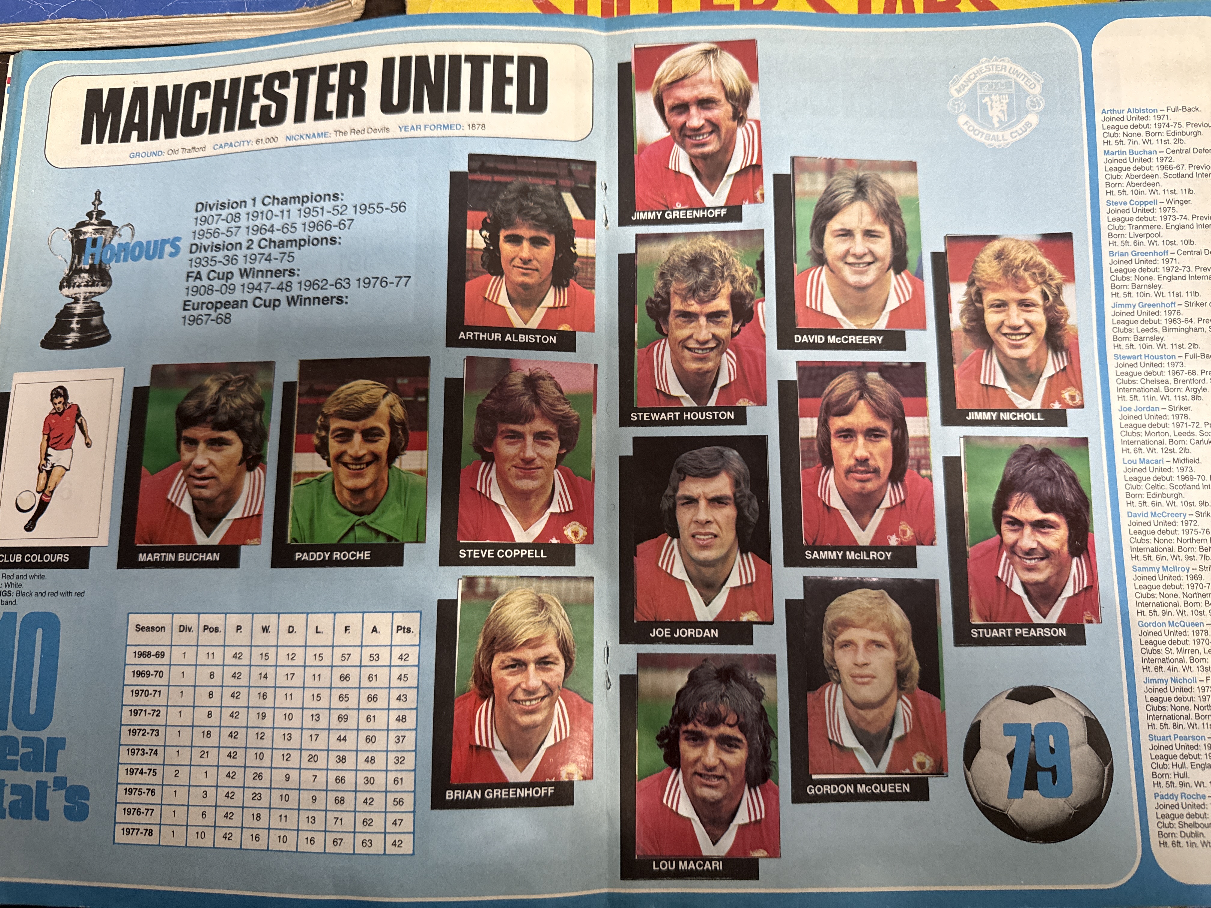 A collection of vintage football sticker albums and annuals dating from 1973 to 1981. The group comprises various titles including Panini Football 79, Panini Football 81, two editions of Soccer Stars 80, The Wonderful World of Soccer Stars 1973/74 Picture Stamp Book, and an AVA Americana Football Special 79 collection album. Each book is almost complete, containing numerous applied colour player stickers and printed team information for the English First and Second Divisions and the Scottish Premier Division. Featured clubs include Manchester United, Newcastle United, Queen’s Park Rangers, Wolverhampton Wanderers, Norwich City, and West Bromwich Albion. The publications consist of printed paper covers and internal pages with photographic illustrations.