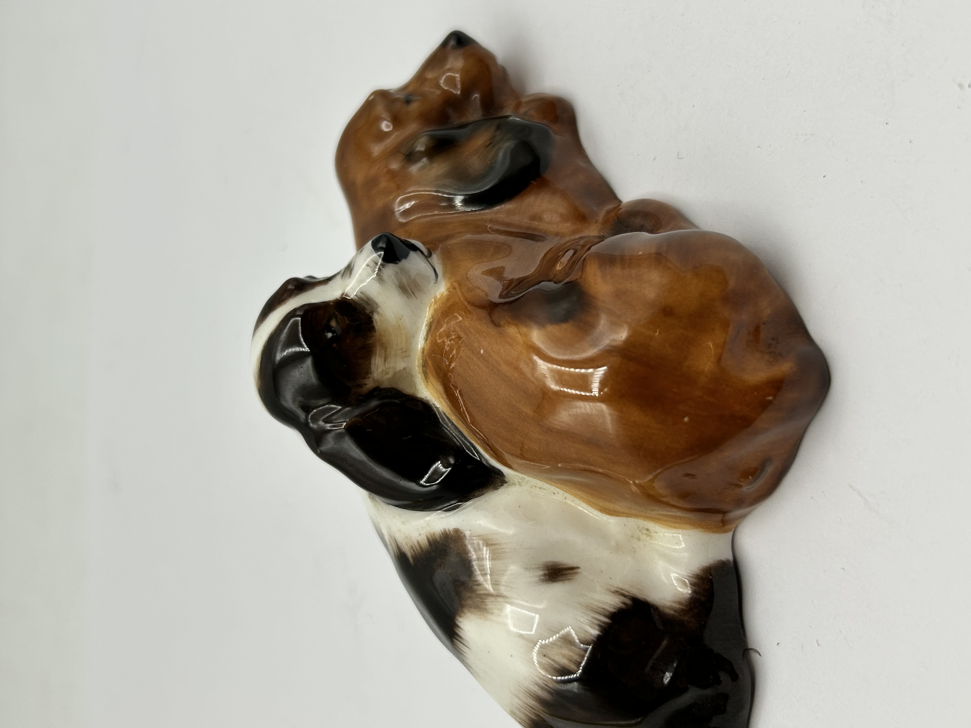 A Royal Doulton bone china figurine, Cocker Spaniels Sleeping, model number HN2590. The piece depicts two dogs nestled together, featuring one brown spaniel and one black and white spaniel. The figurine is finished with a high-gloss glaze and naturalistic colouration. The underside bears the standard green Royal Doulton backstamp with the lion and crown crest, marked MADE IN ENGLAND, ROYAL DOULTON, BONE CHINA.